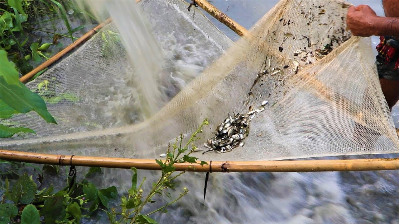 Fishing Techniques - Traditional Fishing Uses Bamboo and Net, Catching ...