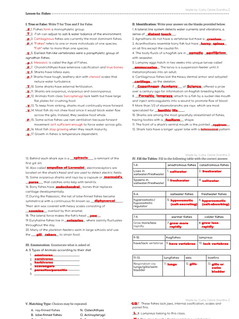Fish Anatomy Worksheets Answer Key - Printable Worksheets