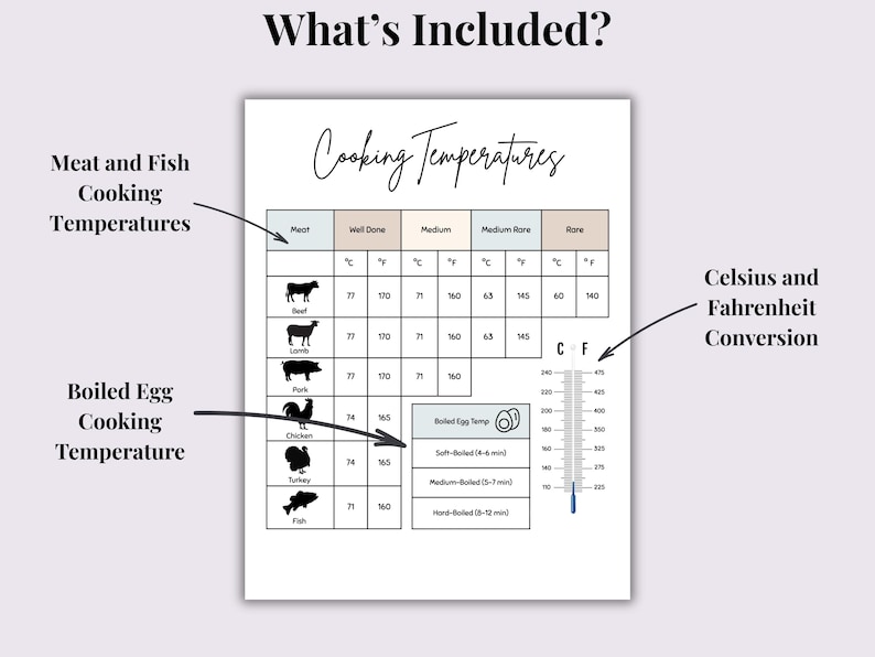 Meat and Fish Cooking Temperatures Chart | Printable (digital Download ...