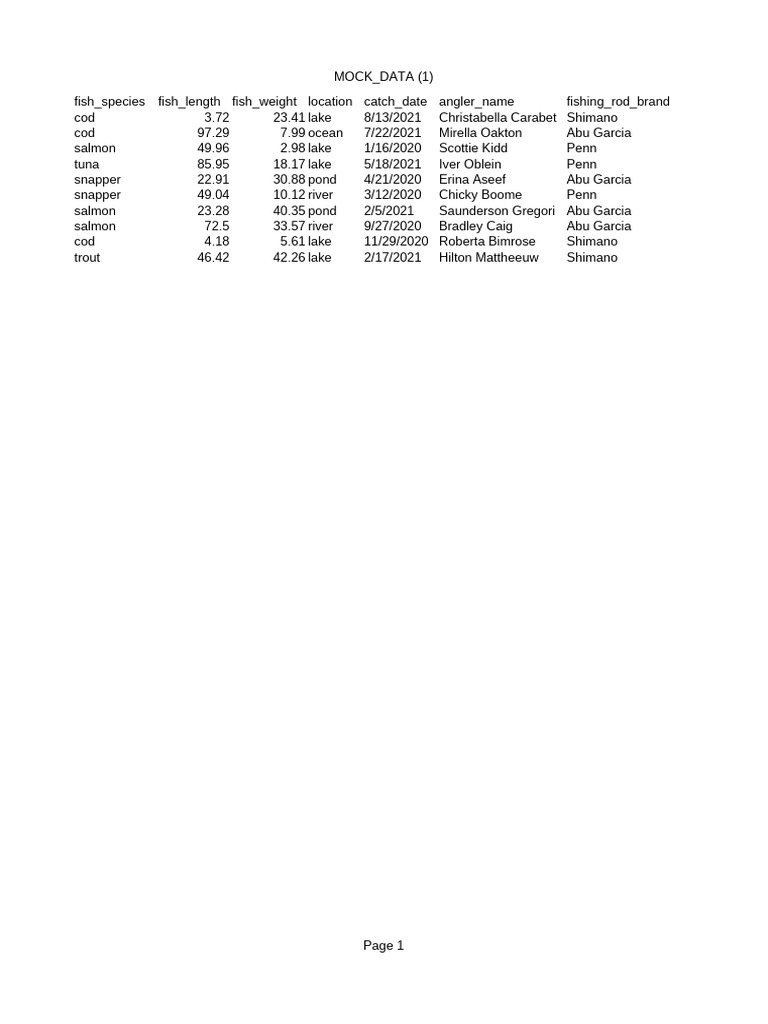 Fishing Data: Species, Sizes, and Conditions | PDF