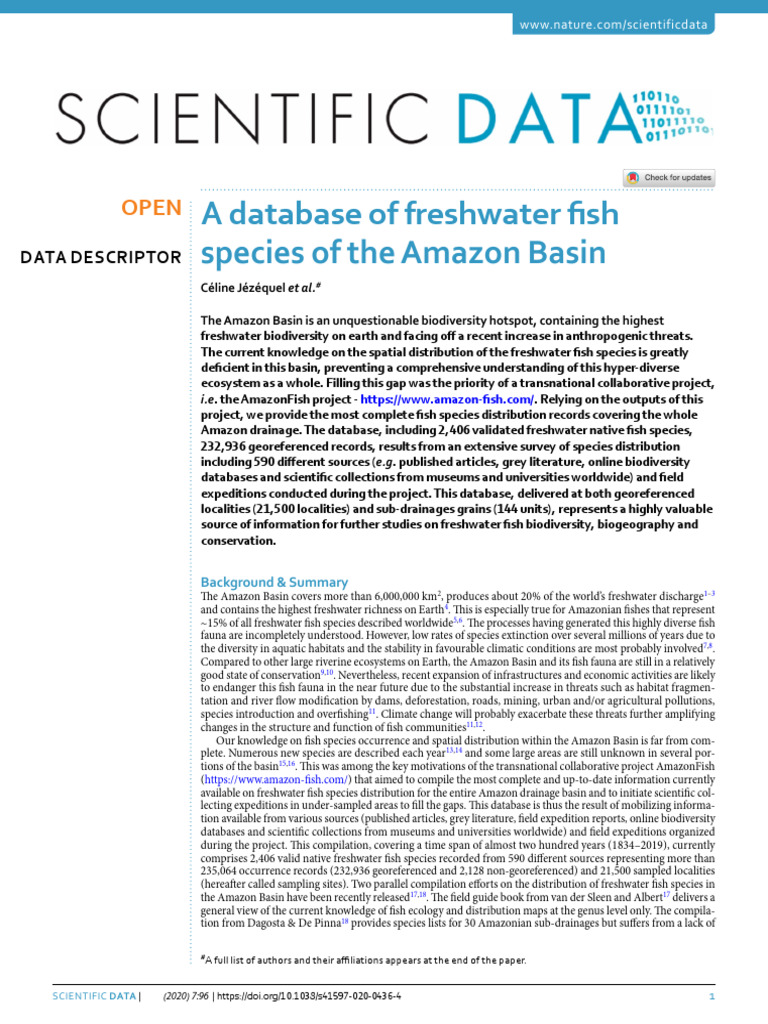 A Database of Freshwater Fish Species of The Amazon Basin | PDF ...