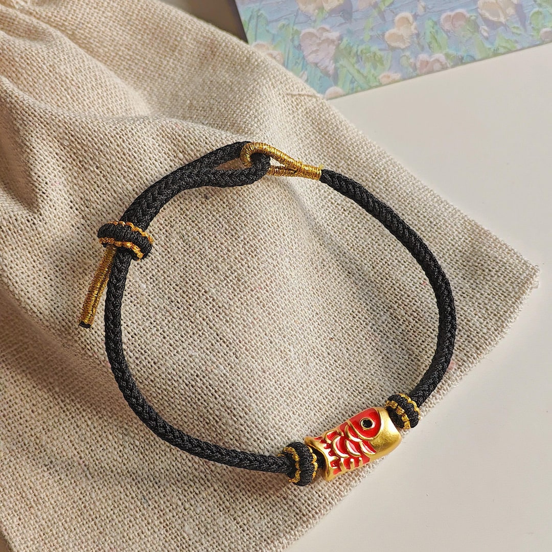 Handmade Lucky Koi Fish Black String Bracelet - Customized With Name ...