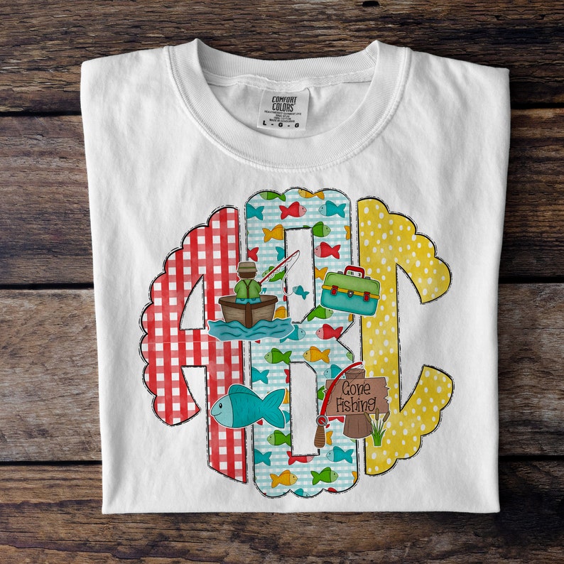 Fishing Doodle Monogram, Initials Alphabet, Scalloped Font, Dads Love ...