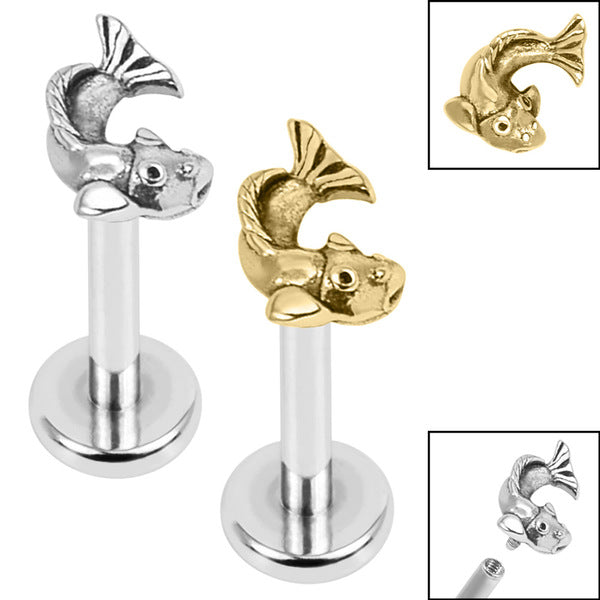 Koi Fish Internally Threaded Labret • 18G/16G Flat Back Earring ...