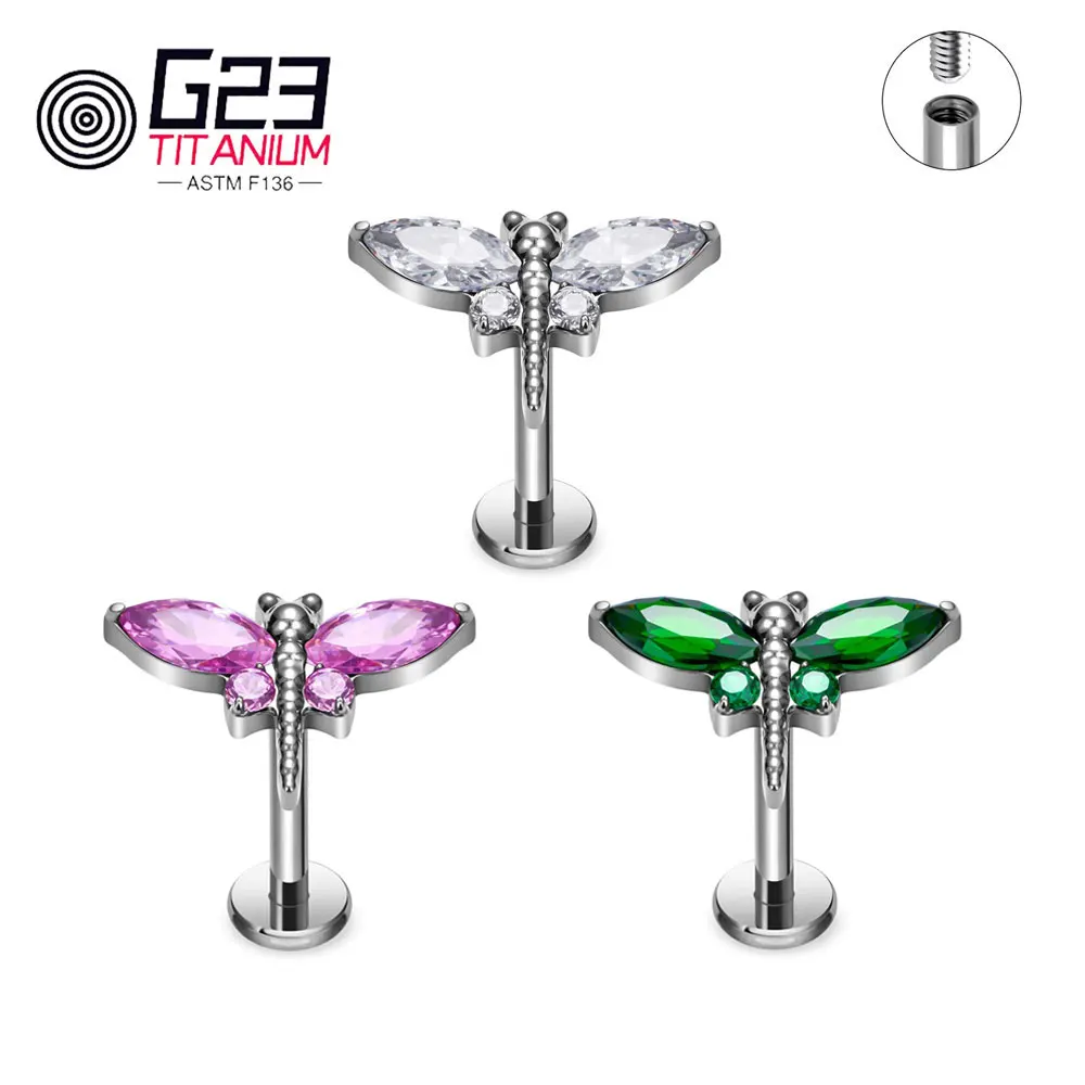 G23 Titanium CZ Fish Flower Moon Flat Back 16G Labret Lip Ring ...