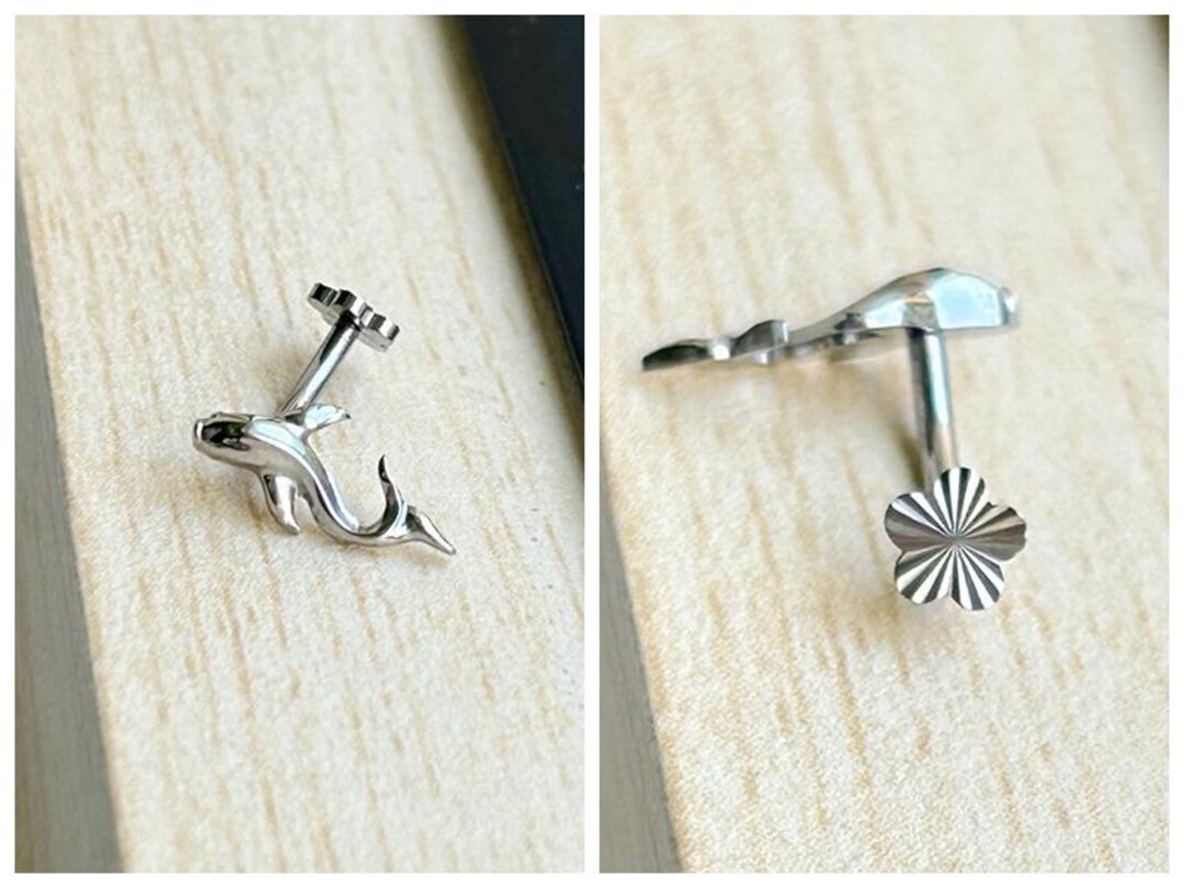 Fish Labret Piercing G23 Titanium Heart Earring Push In Stud Flower ...