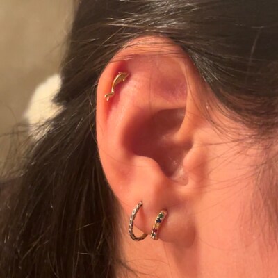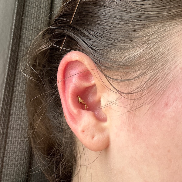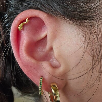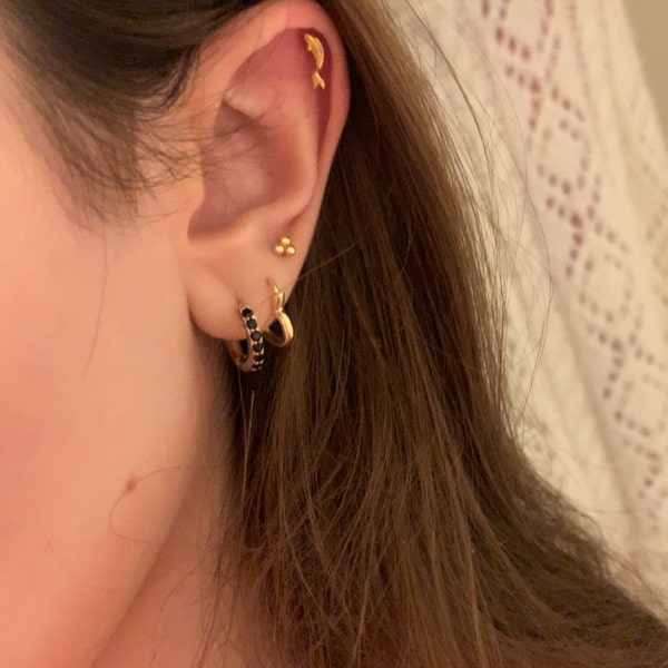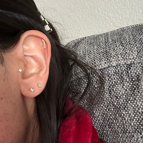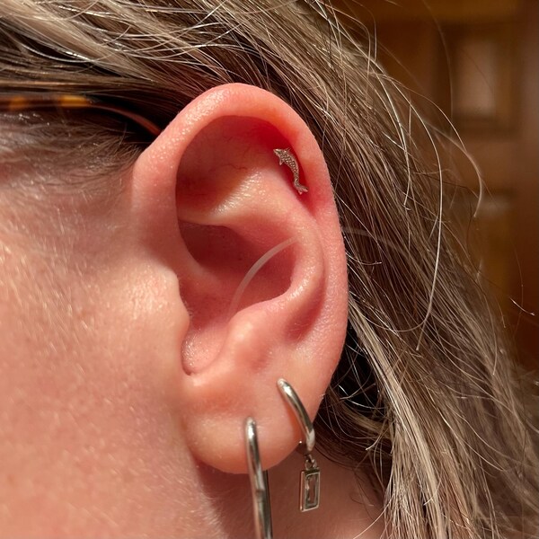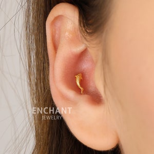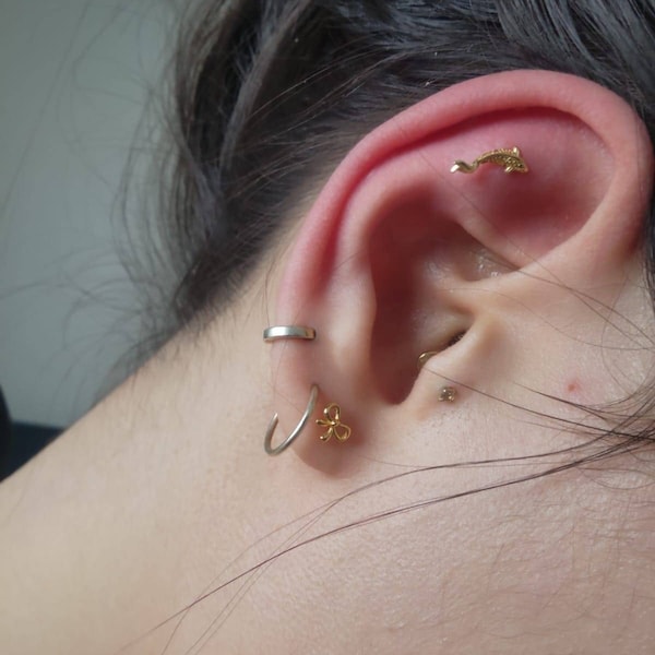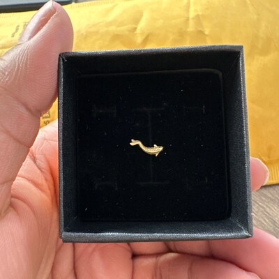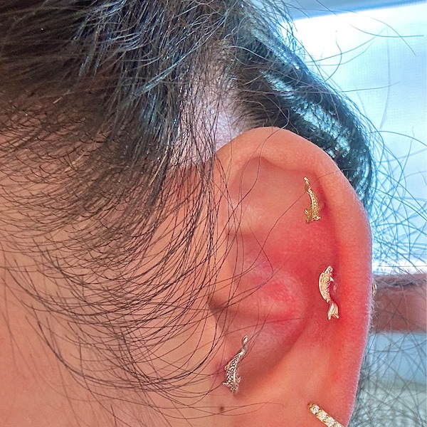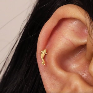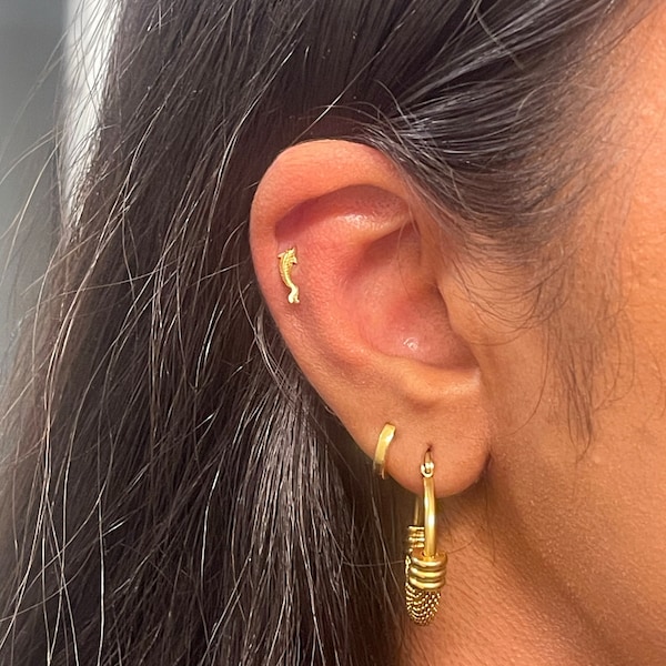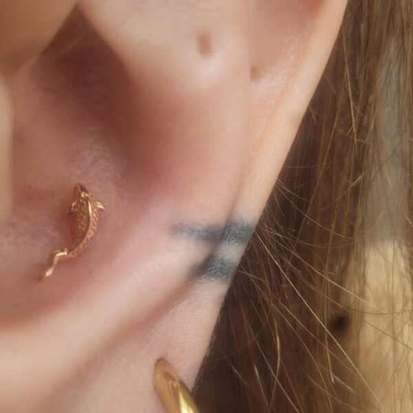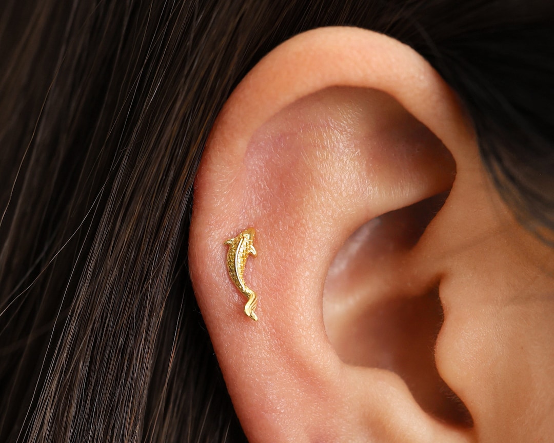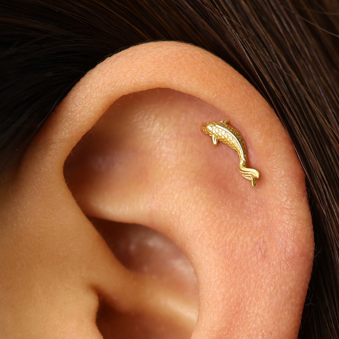 14K Solid Gold Fish Cartilage Earring Minimalist Tragus/labret Piercing ...