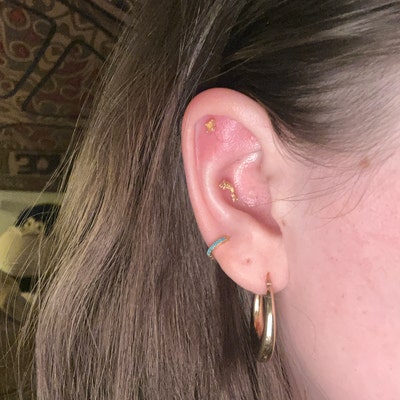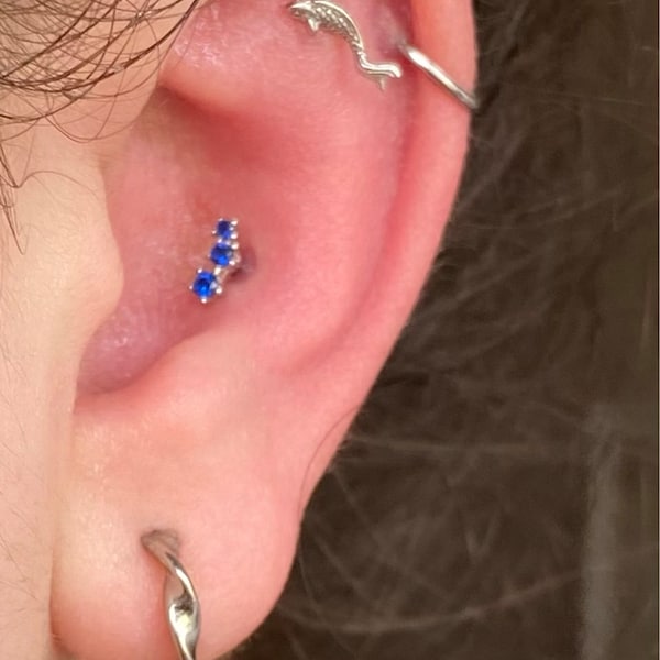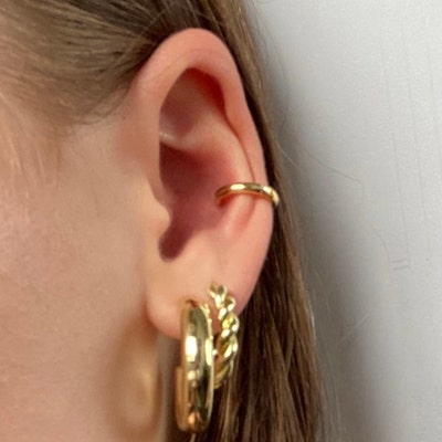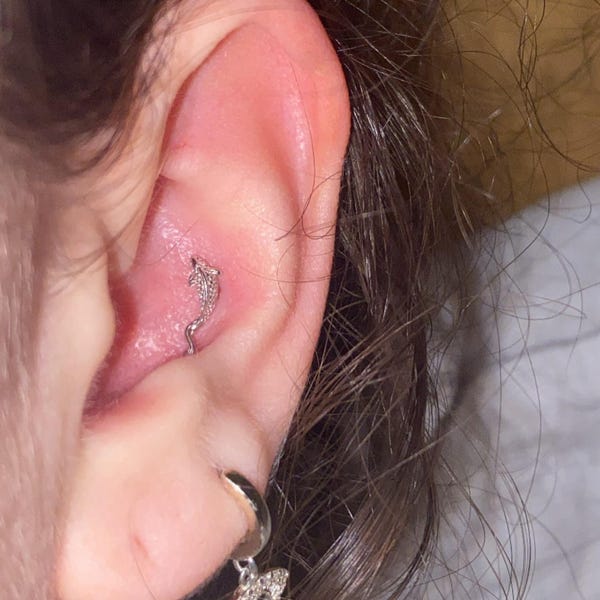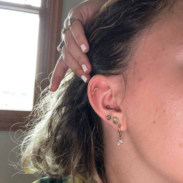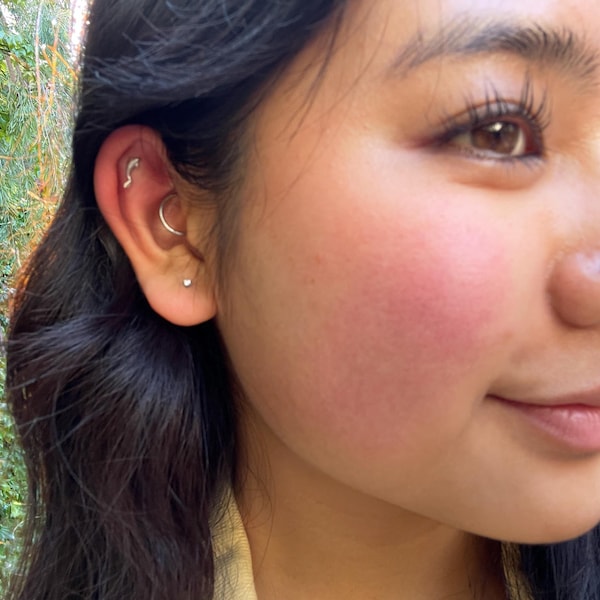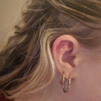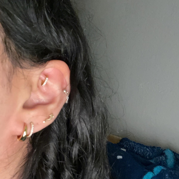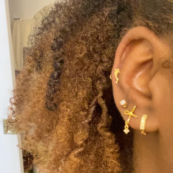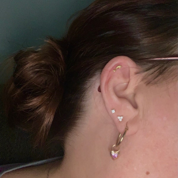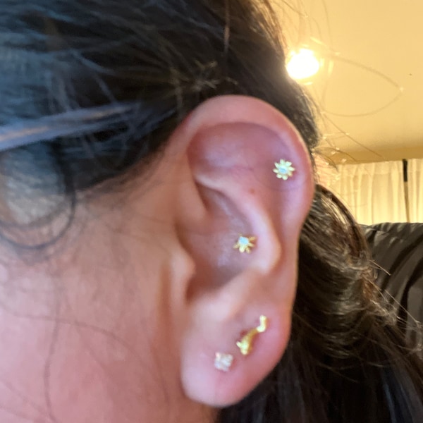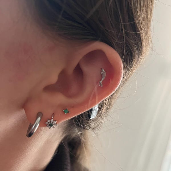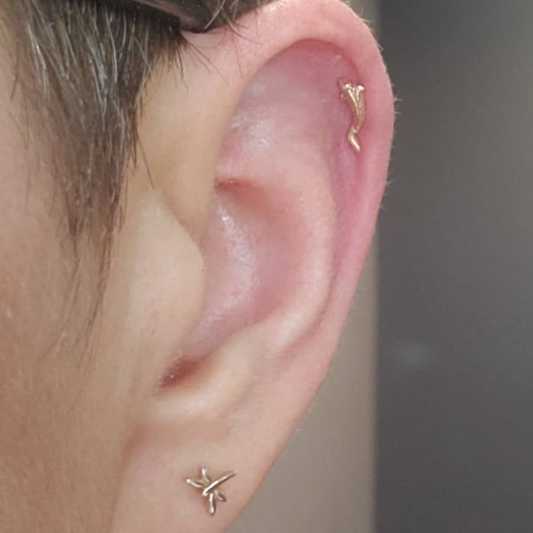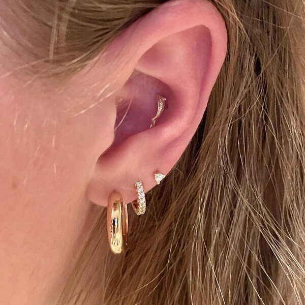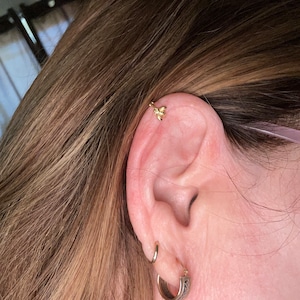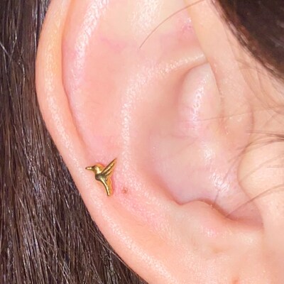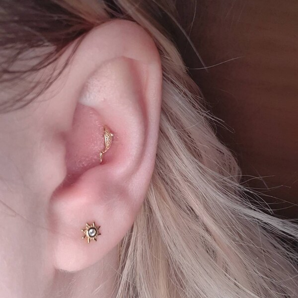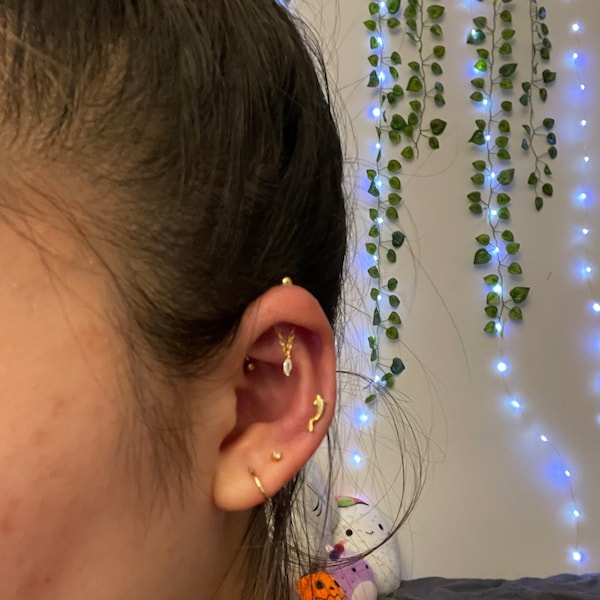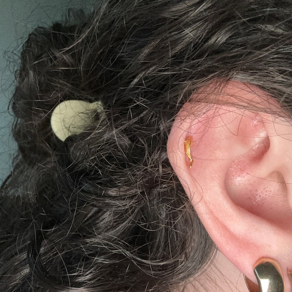 14K Solid Gold Fish Cartilage Earring Minimalist Tragus/labret Piercing ...