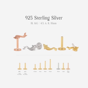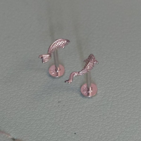 18G/16G Koi Fish Cartilage Flat Back Labret Cute Stud Earrings Tragus ...
