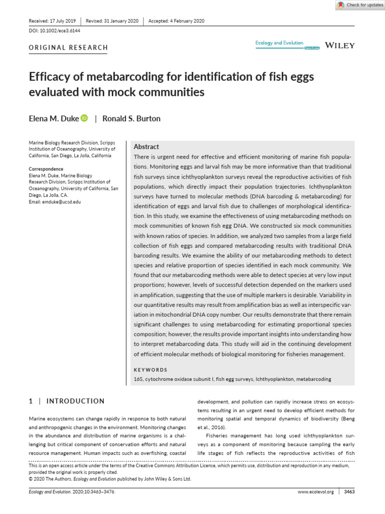 Metabarcoding Fish Eggs for Monitoring | PDF | Polymerase Chain ...
