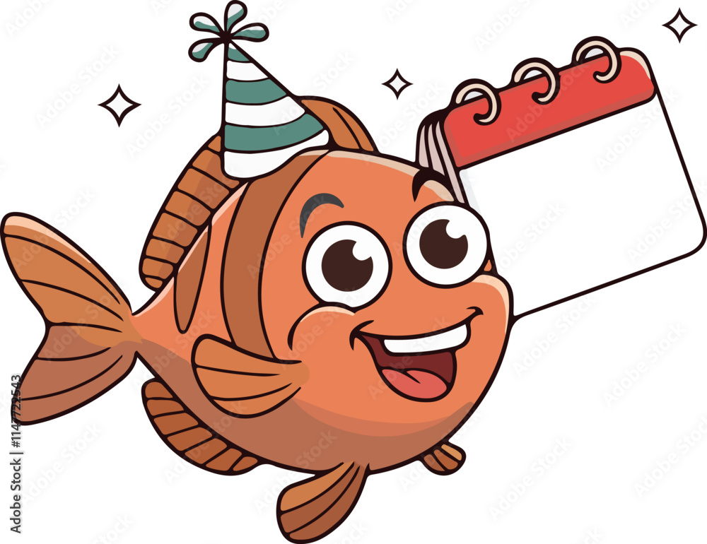 Cartoon illustration of cute fish character holding blank paper Stock ...