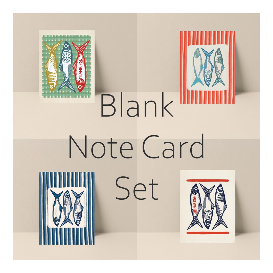 Blank Note Card Set, Note Card, Fish Note Card, Sardine Note Card, Fish ...