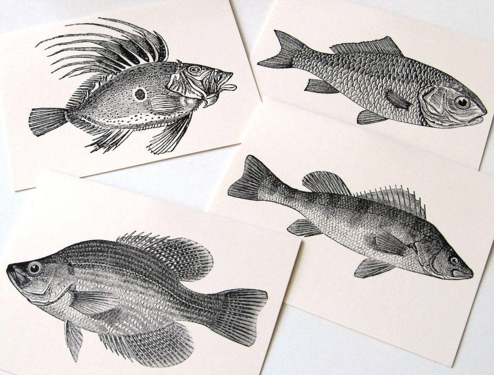 Fish Note Cards Stationery Set of 12 Cards in White or Light Ivory With ...