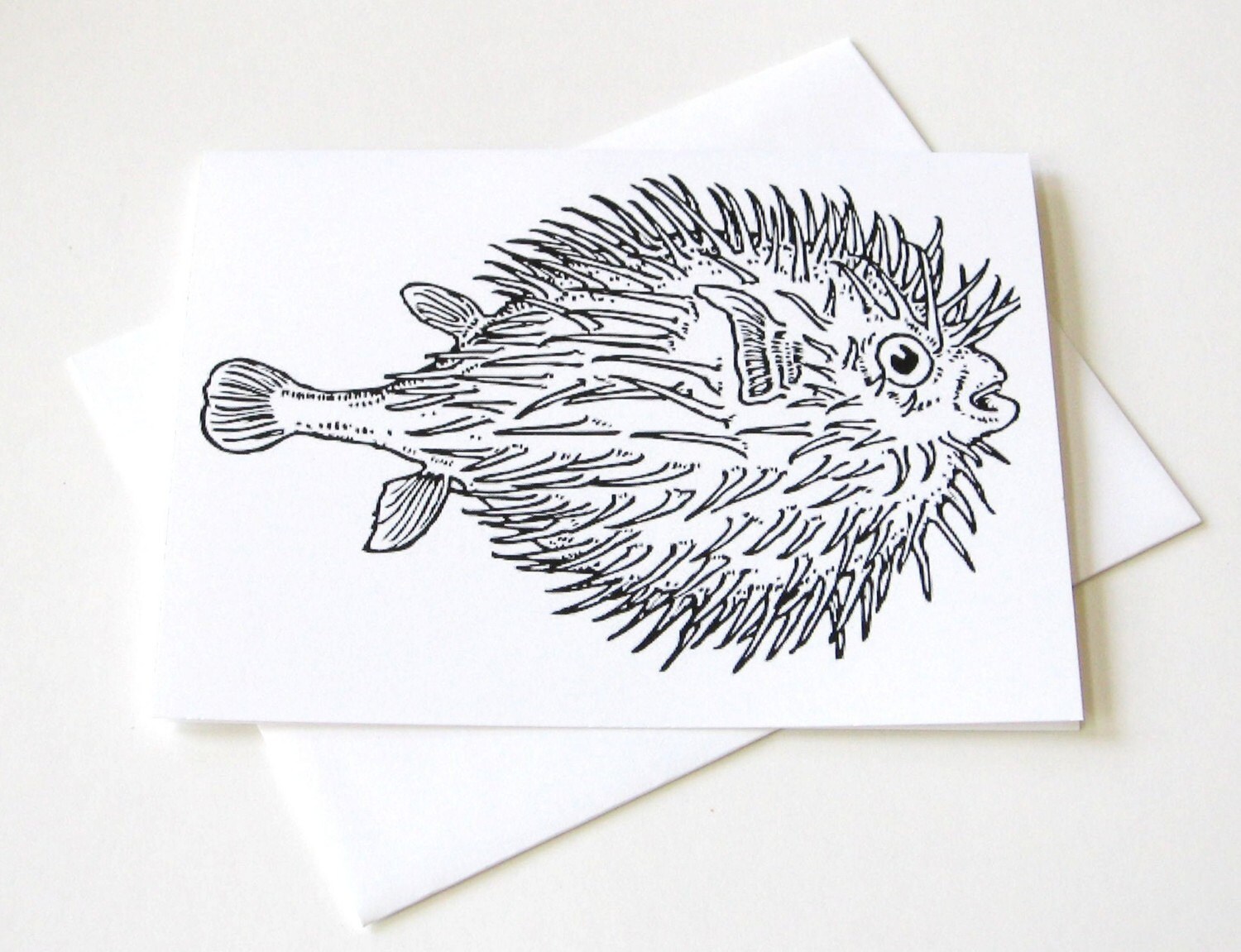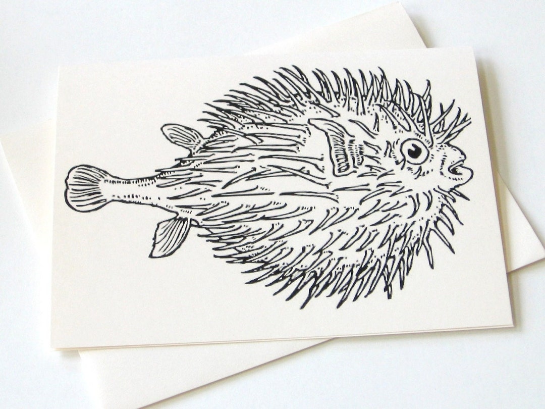 Puffer Fish Note Cards Stationery Set of 10 Cards in White or - Etsy