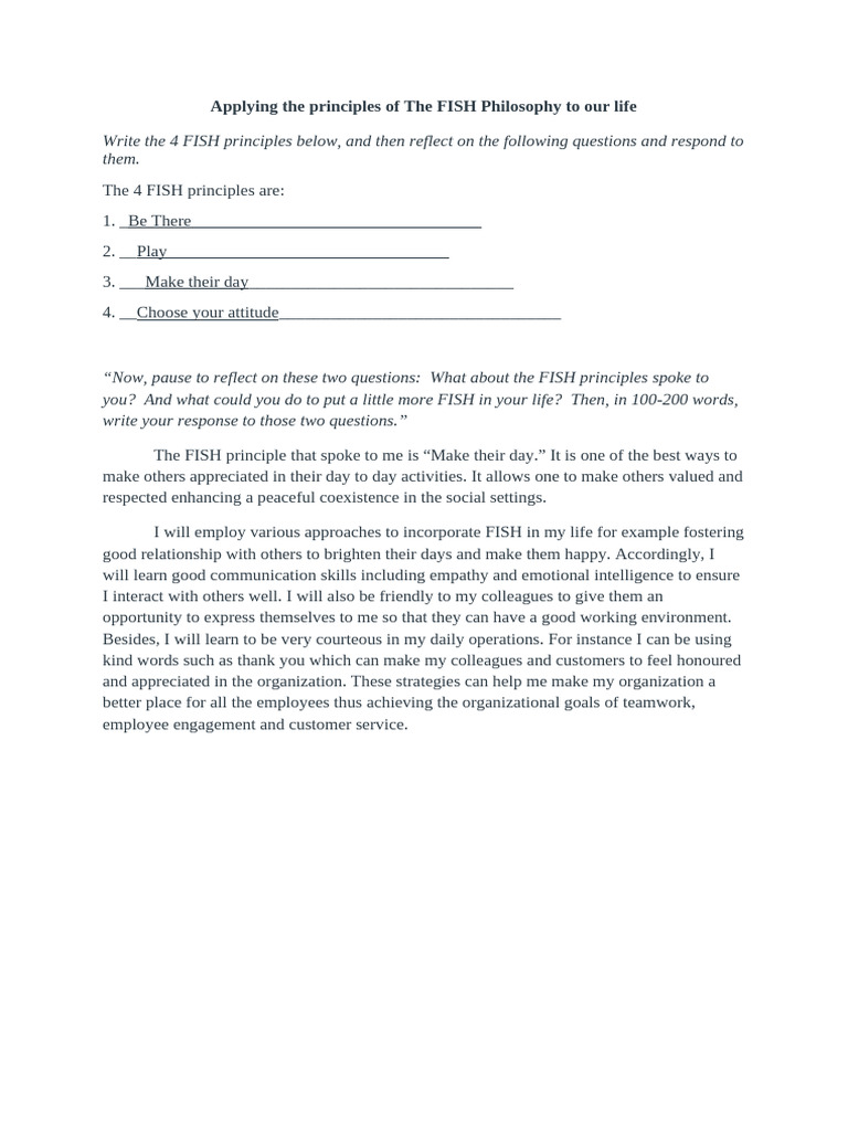 Applying The Principles of The FISH Philosophy To Our Life | PDF