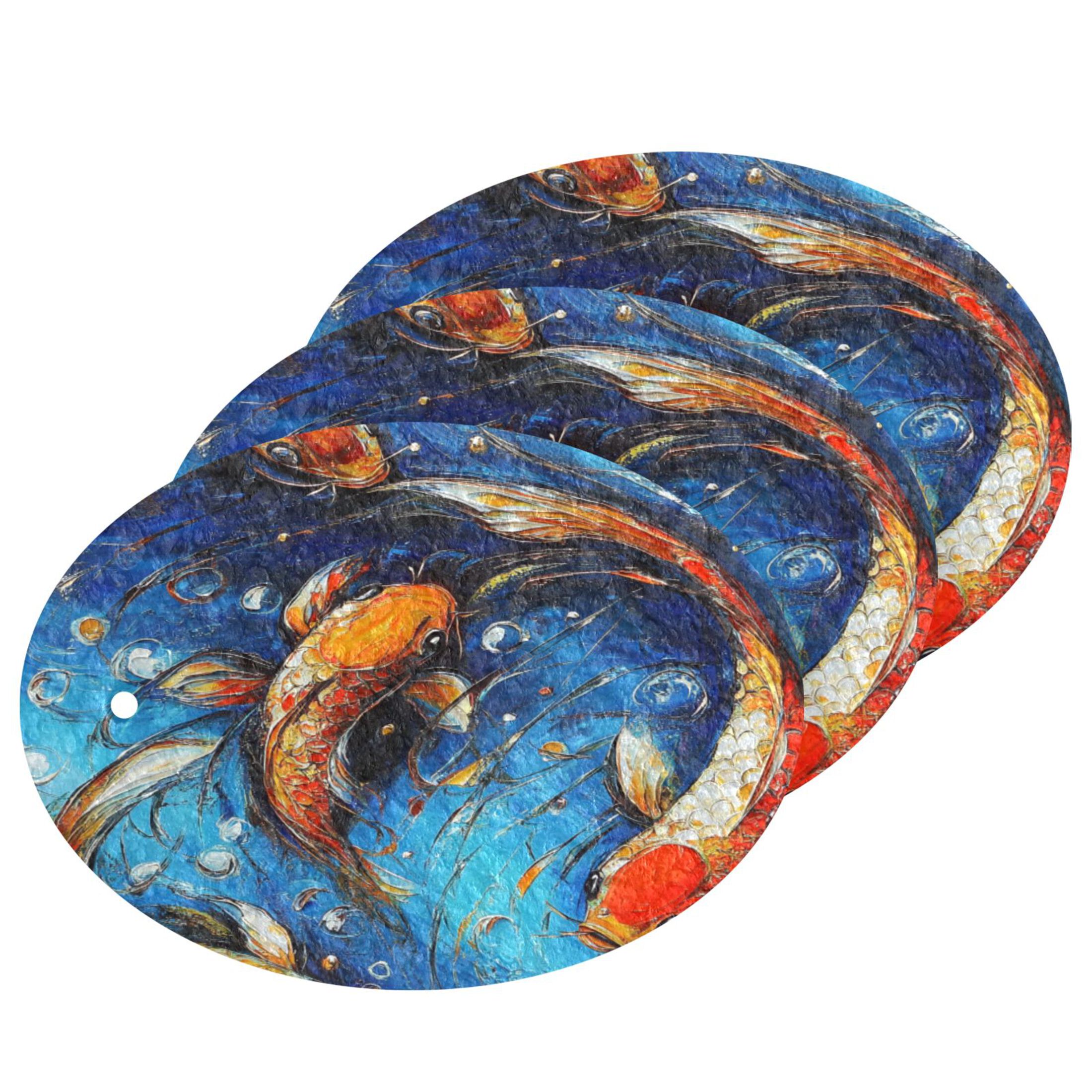 Colorful Koi Fish in Water 3 Pack Wood Pulp Dishwashing Sponges, Highly ...