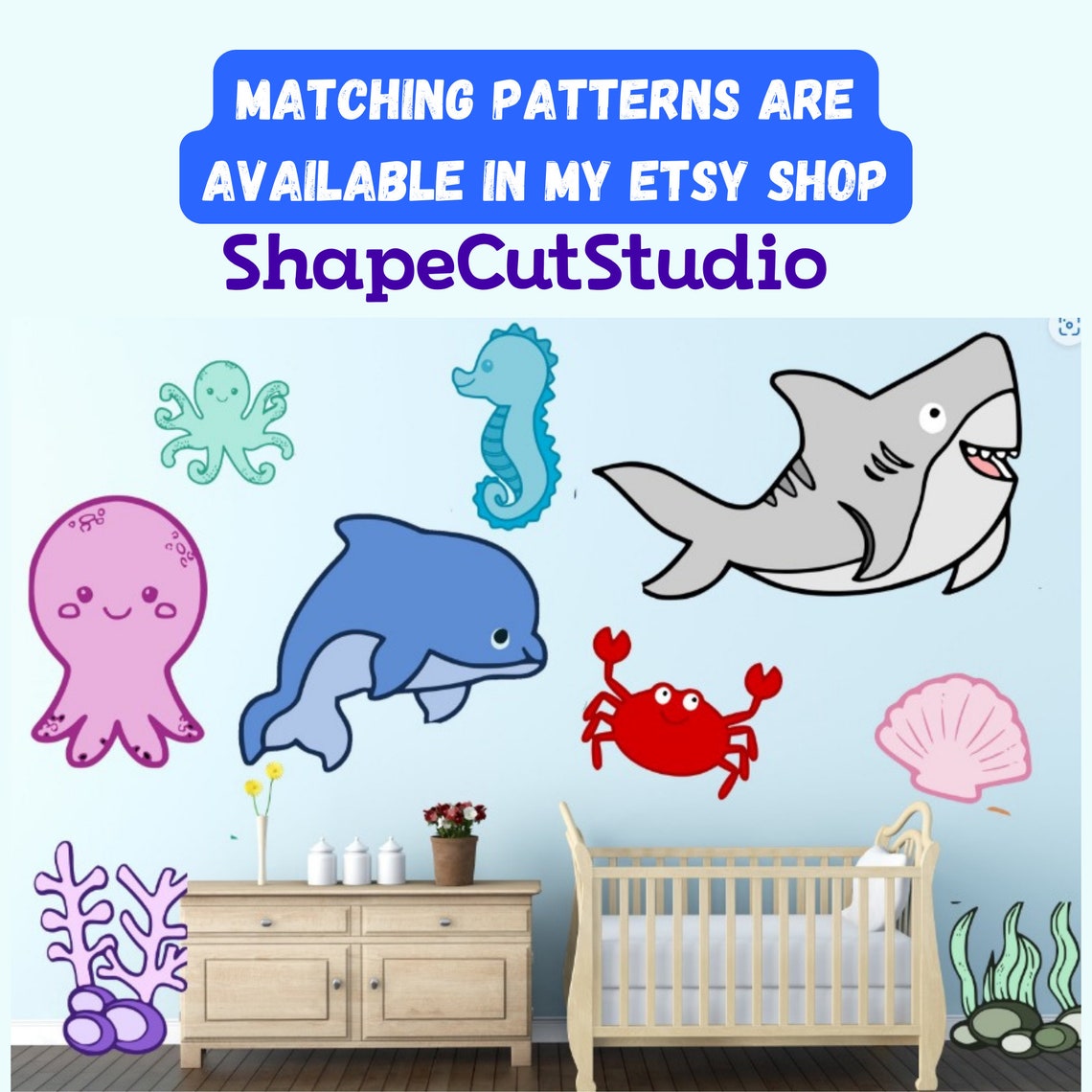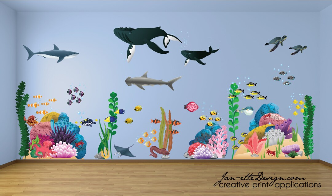 Fish Decals,ocean Theme Room, Whale,coral Reef,tall Seaweed and Sharks ...