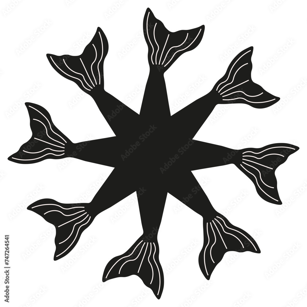 Surrealistic black and white Art. Sur Fishtail abstract isolated white ...