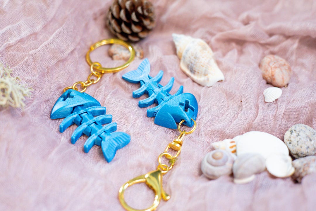 Keychain Fish Bone Blue - 3D Printed Accessory Colourful Vibrant - Etsy