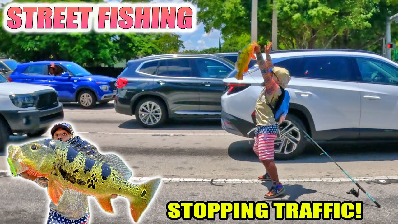 Stopping Traffic to Catch Fish - Miami Street Fishing Madness!