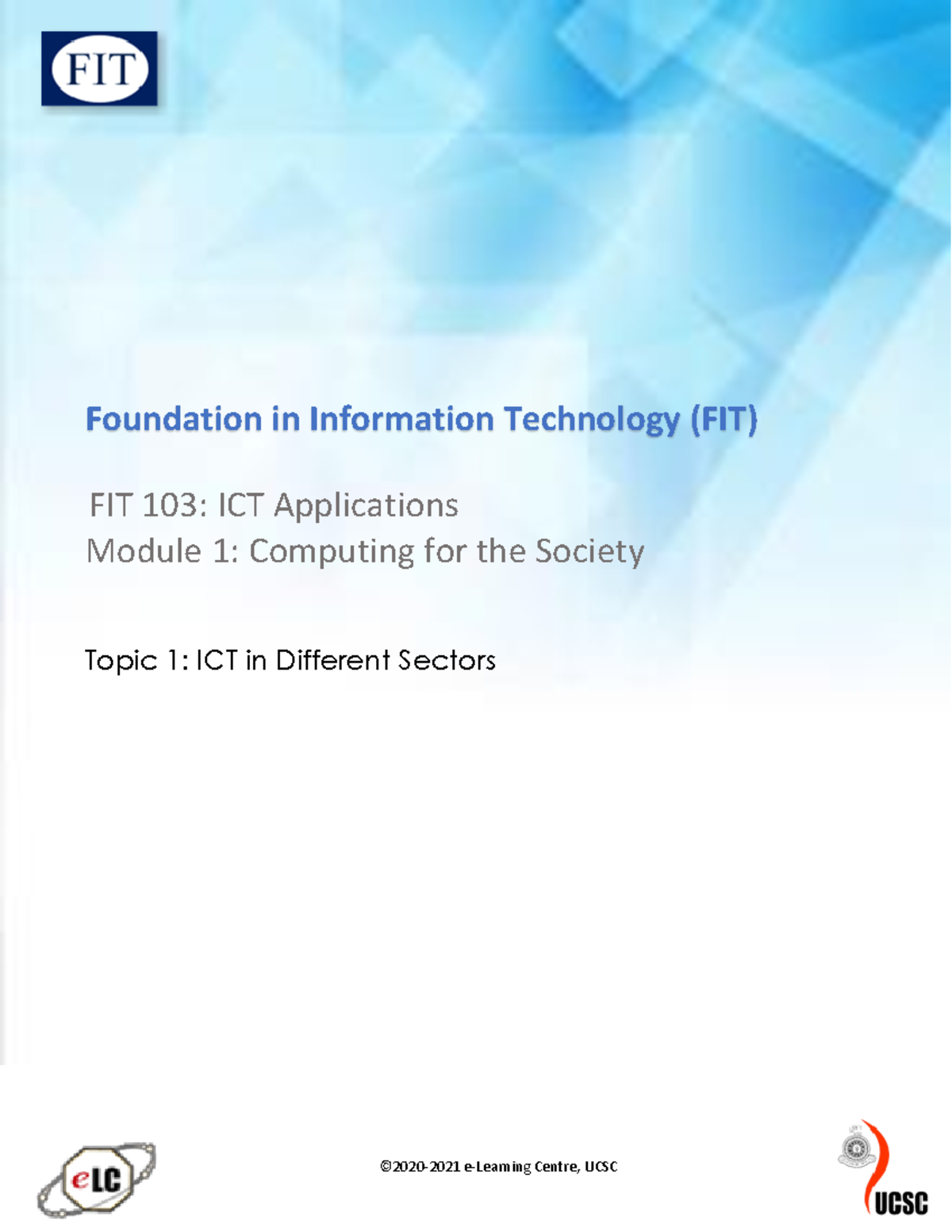 FIT Module 1 topic 1- Student manual - Foundation in Information ...