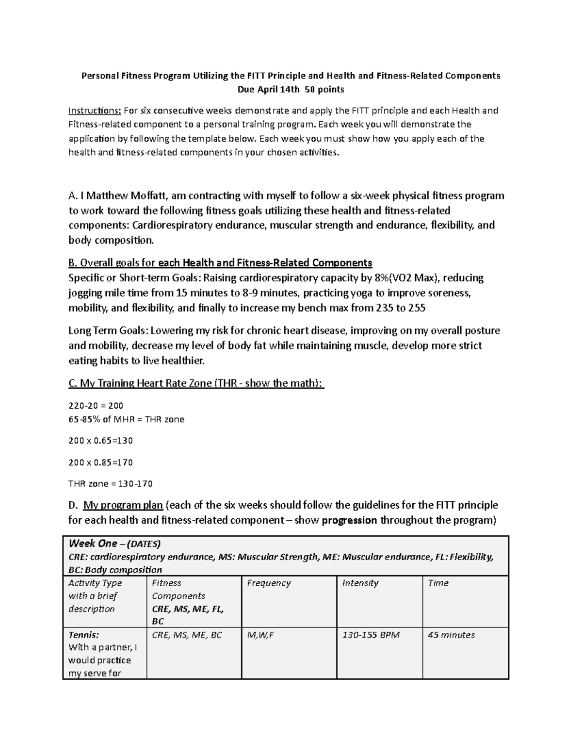 Moffatt Personal Fitness Program Utilizing the FITT Principle and ...