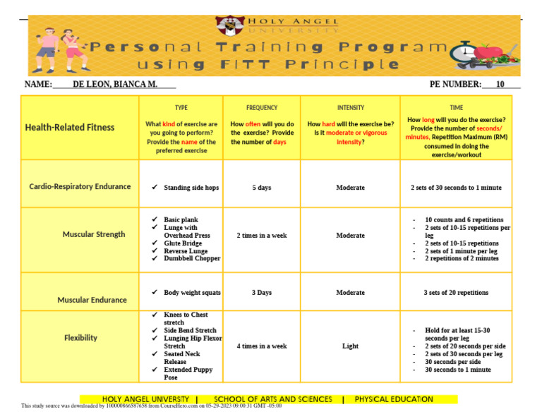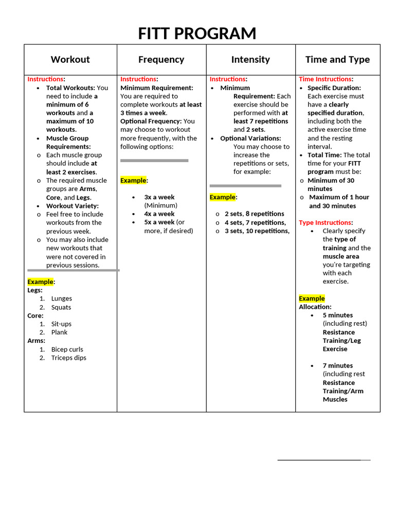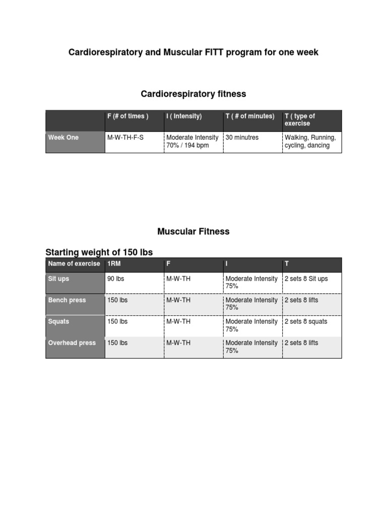 Fitt Principle Workout Plan Example Brainly at Joann Bayer blog