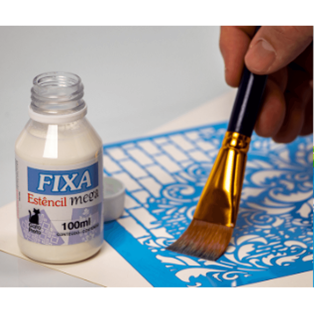 Fixa Estêncil Mega Stencil 100ml Gato Preto - atacadaodoartesanatomdf