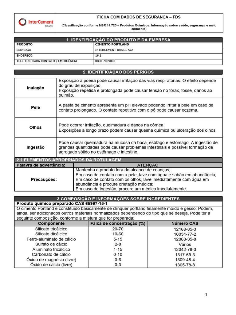Ficha de Segurança do Cimento Portland | PDF | Cimento | Desperdício