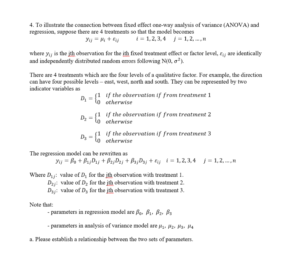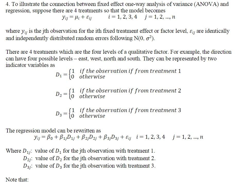 Solved 4. Consider the following fixed effects model with | Chegg.com