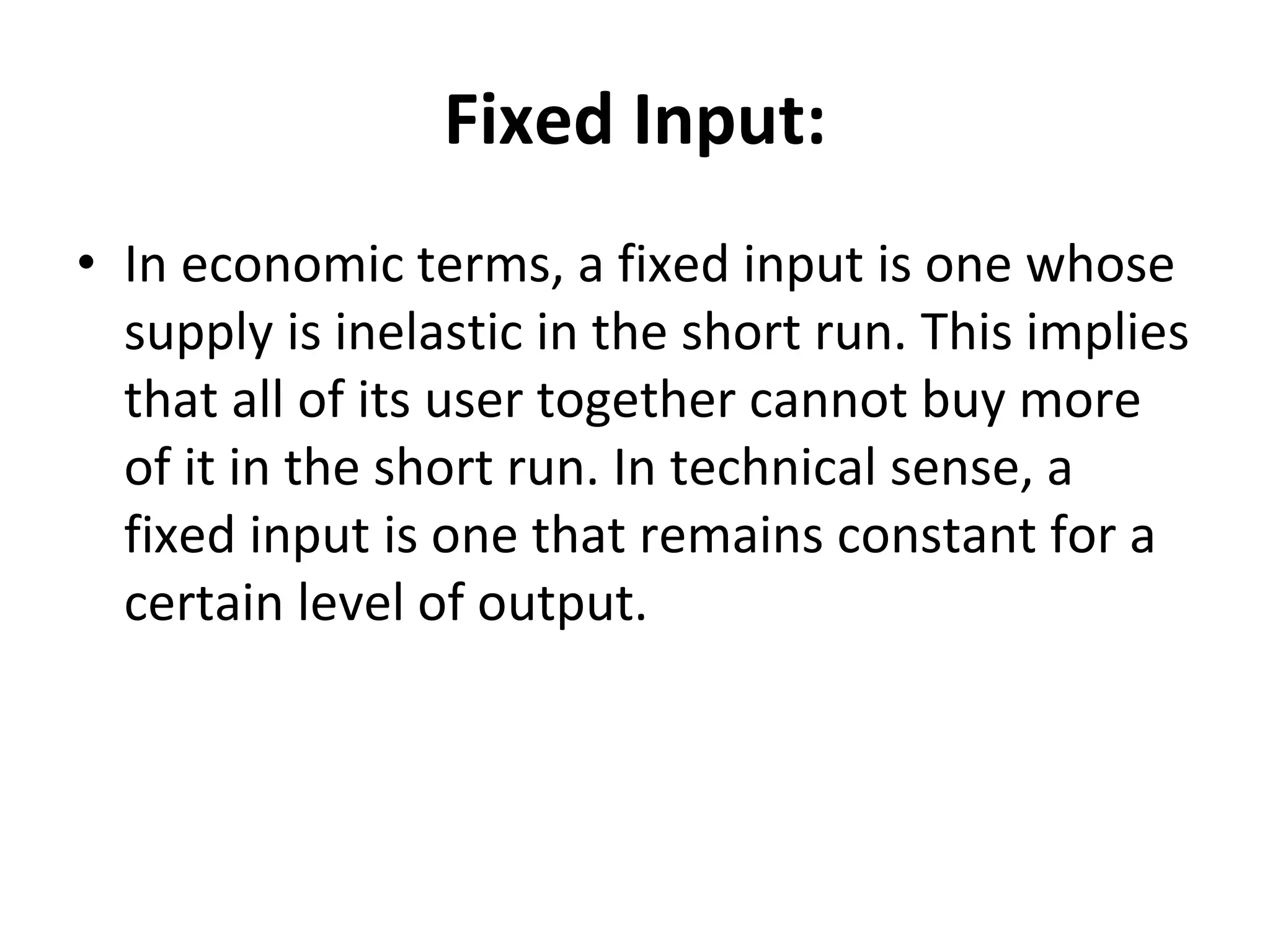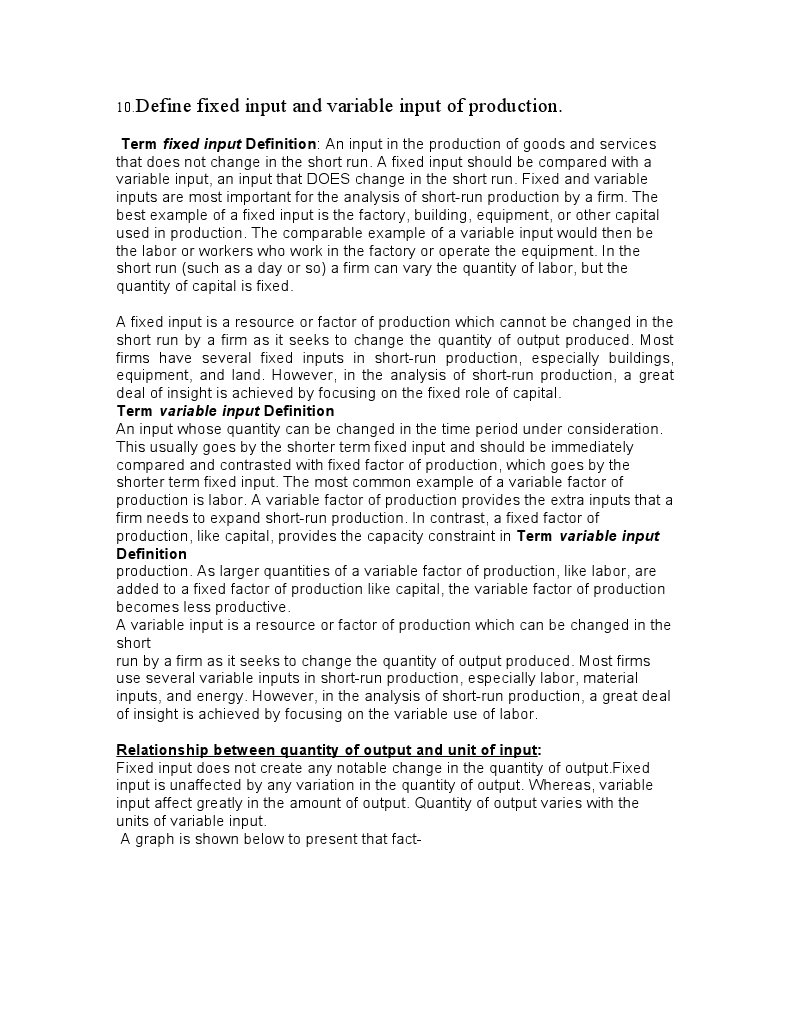 Define Fixed Input and Variable Input of Production | PDF | Production ...