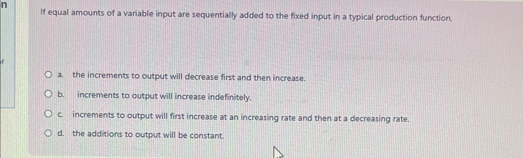 Solved If equal amounts of a variable input are sequentially | Chegg.com
