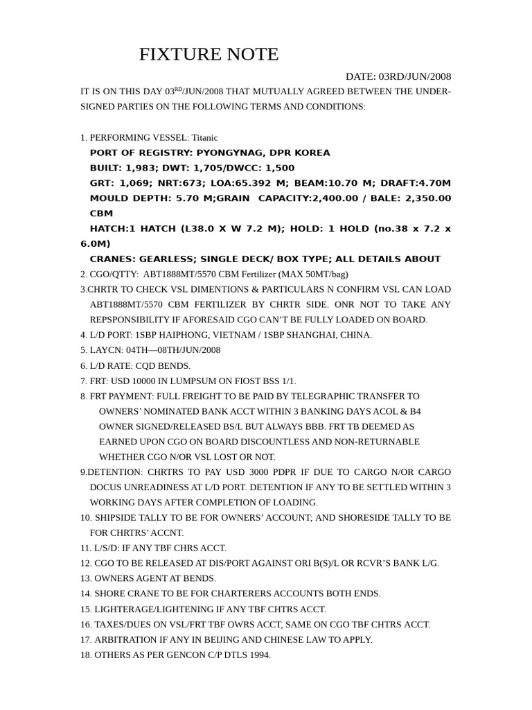 Fixture note.pdf | Tonnage | Shipping