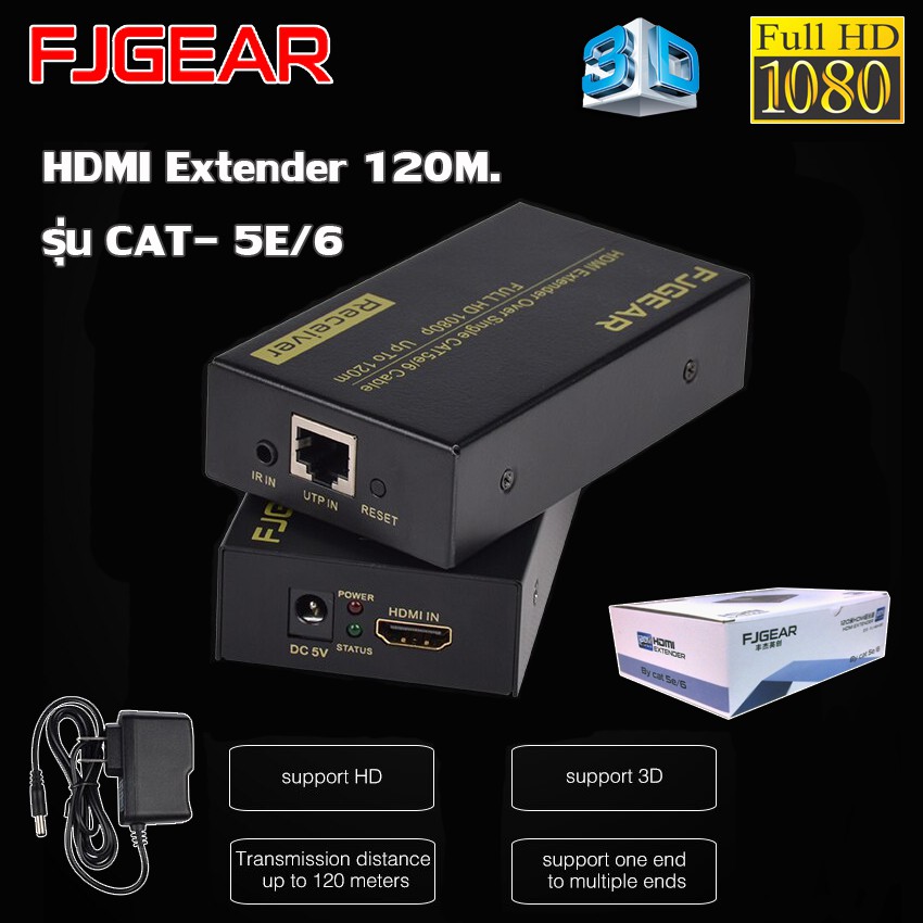 FJGEAR HDMI Extender 120M. 1080p CAT- 5E/6 อุปกรณ์ขยาย HDMI โดย LAN ...