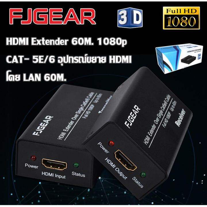 FJGEAR HDMI Extender 60M. 1080p CAT- 5E/6 อุปกรณ์ขยาย HDMI โดย LAN 60M ...