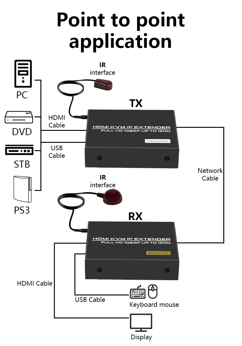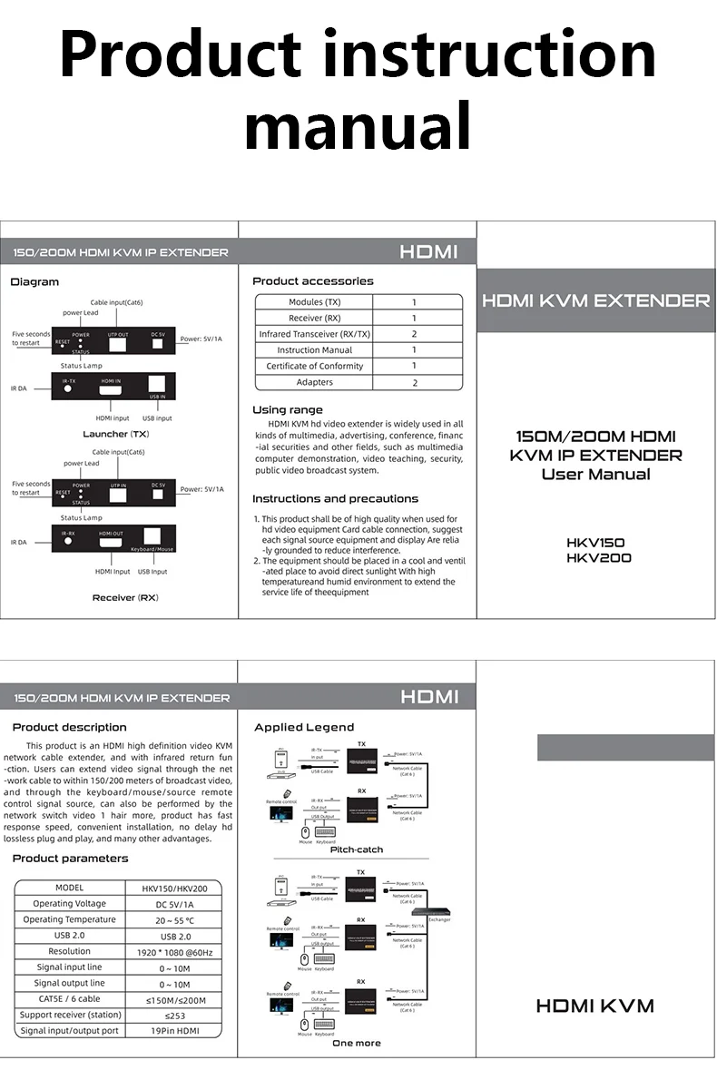 FJ-HKV150A Fjgear High Quality Hd Hdmi To Lan 150M 1080P Hdmi Kvm Ip ...