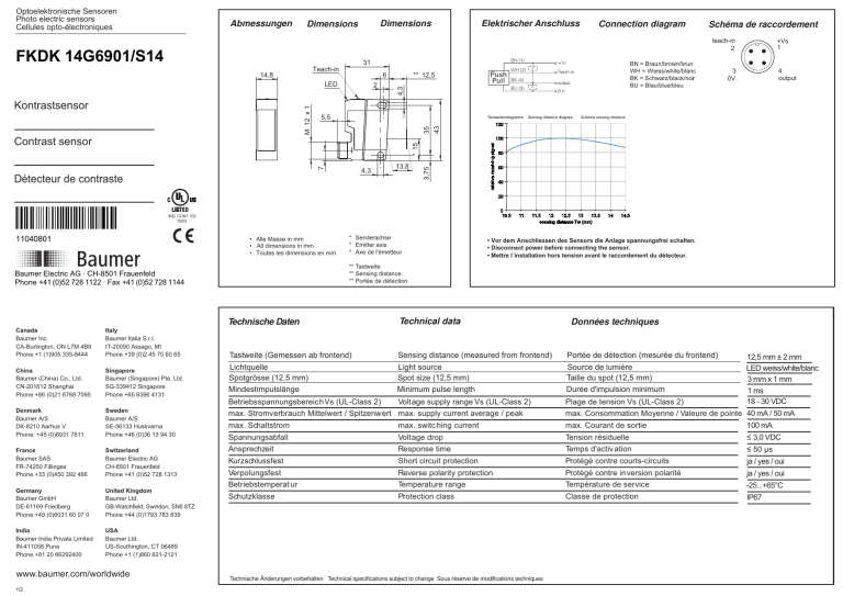 Baumer FKDH 14G6901 Diffuse contrast sensor Data sheet | Manualzz