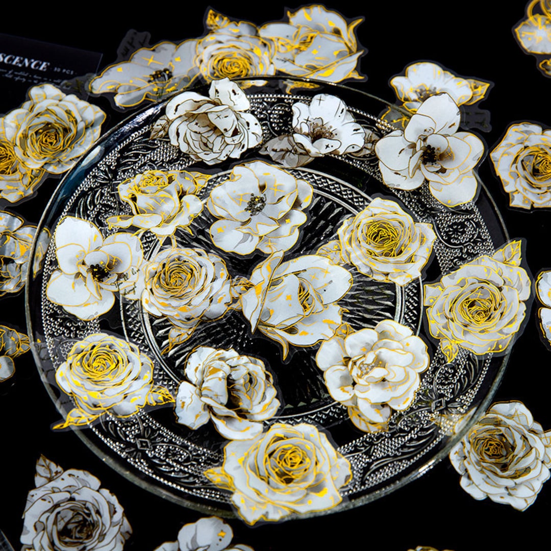 30pcs Gold Foil Flower Stickers, White Flower Bullet Journal Sticker ...