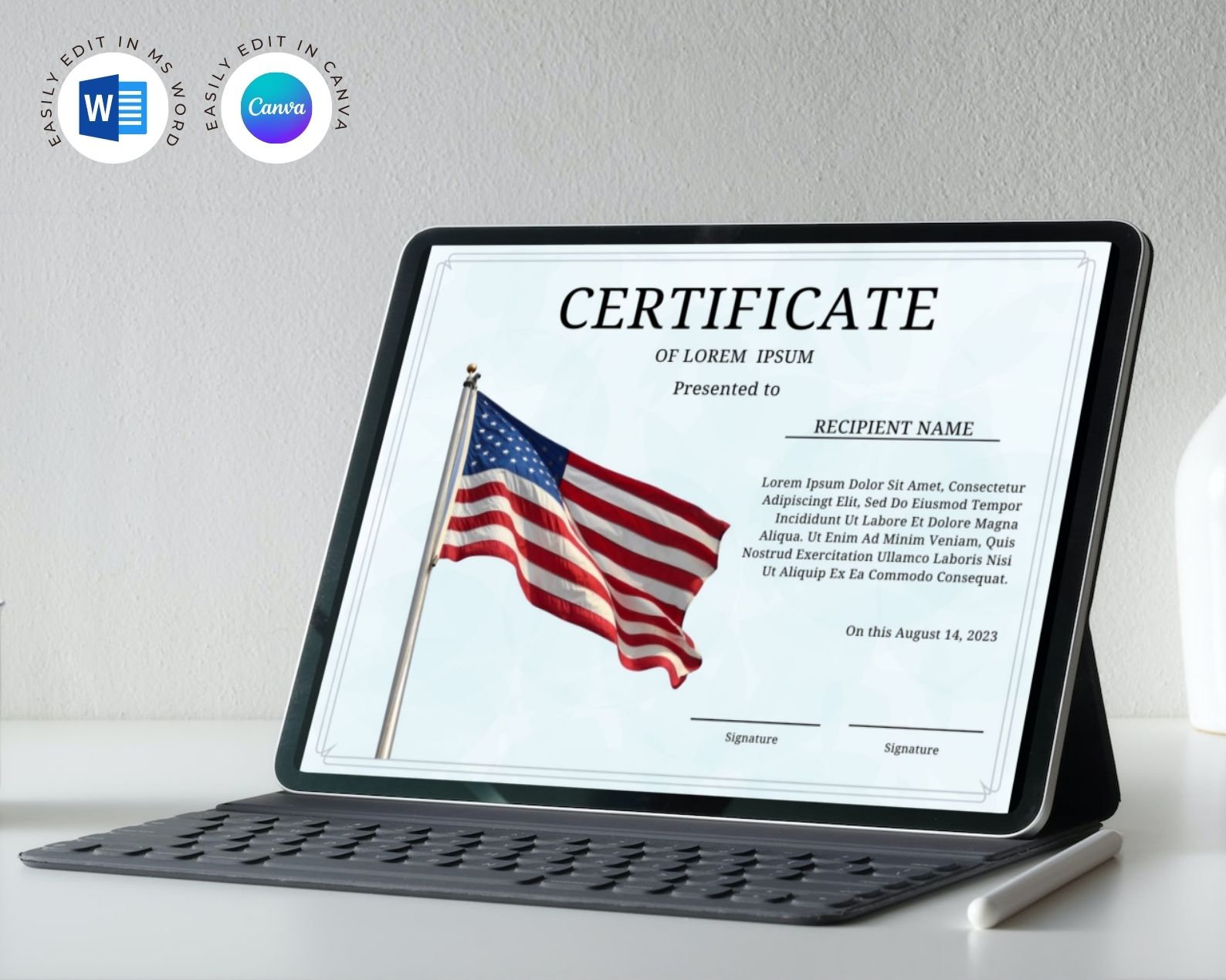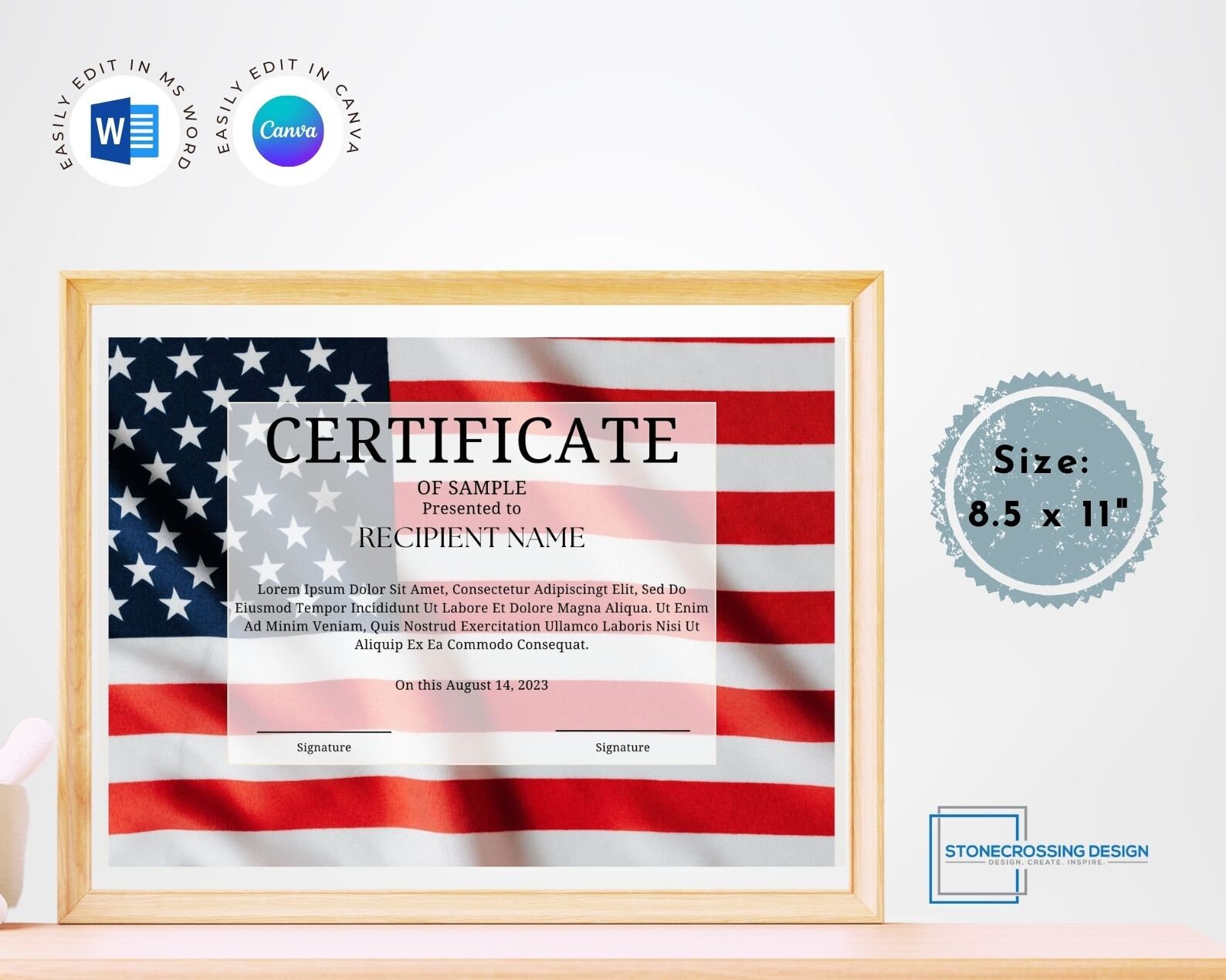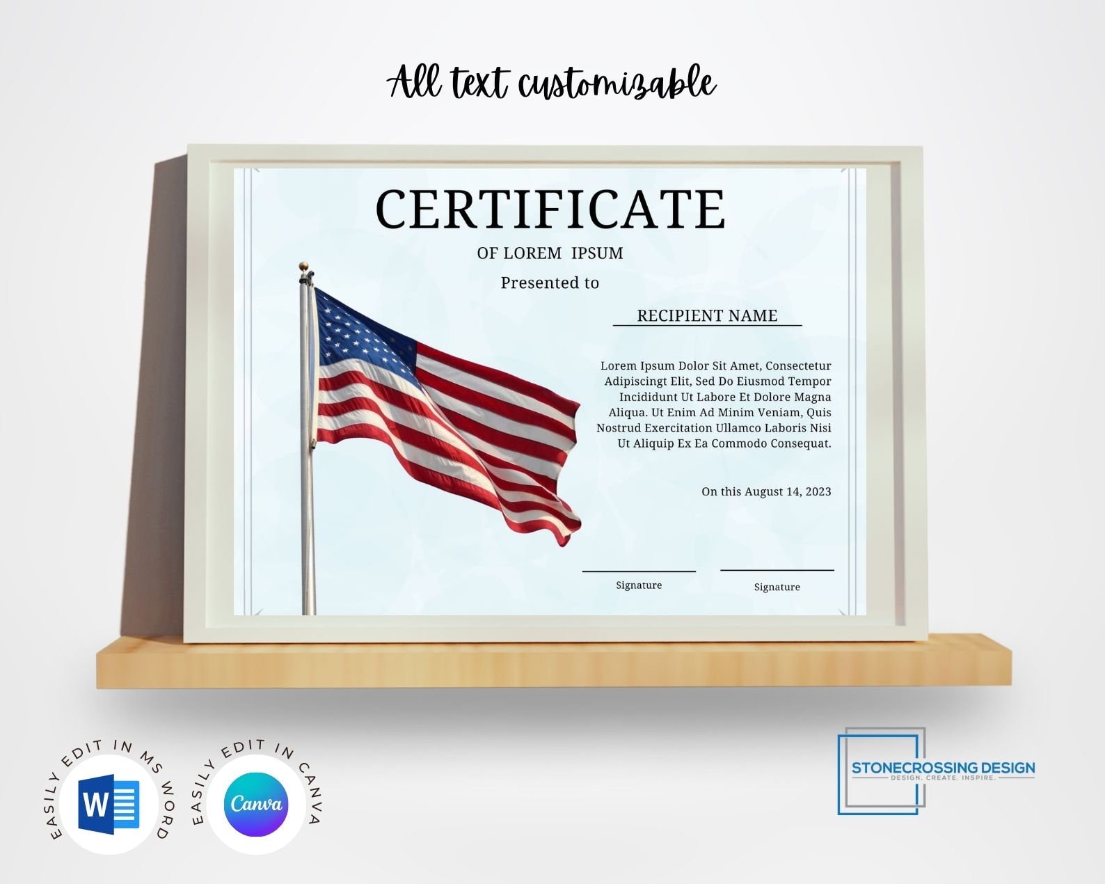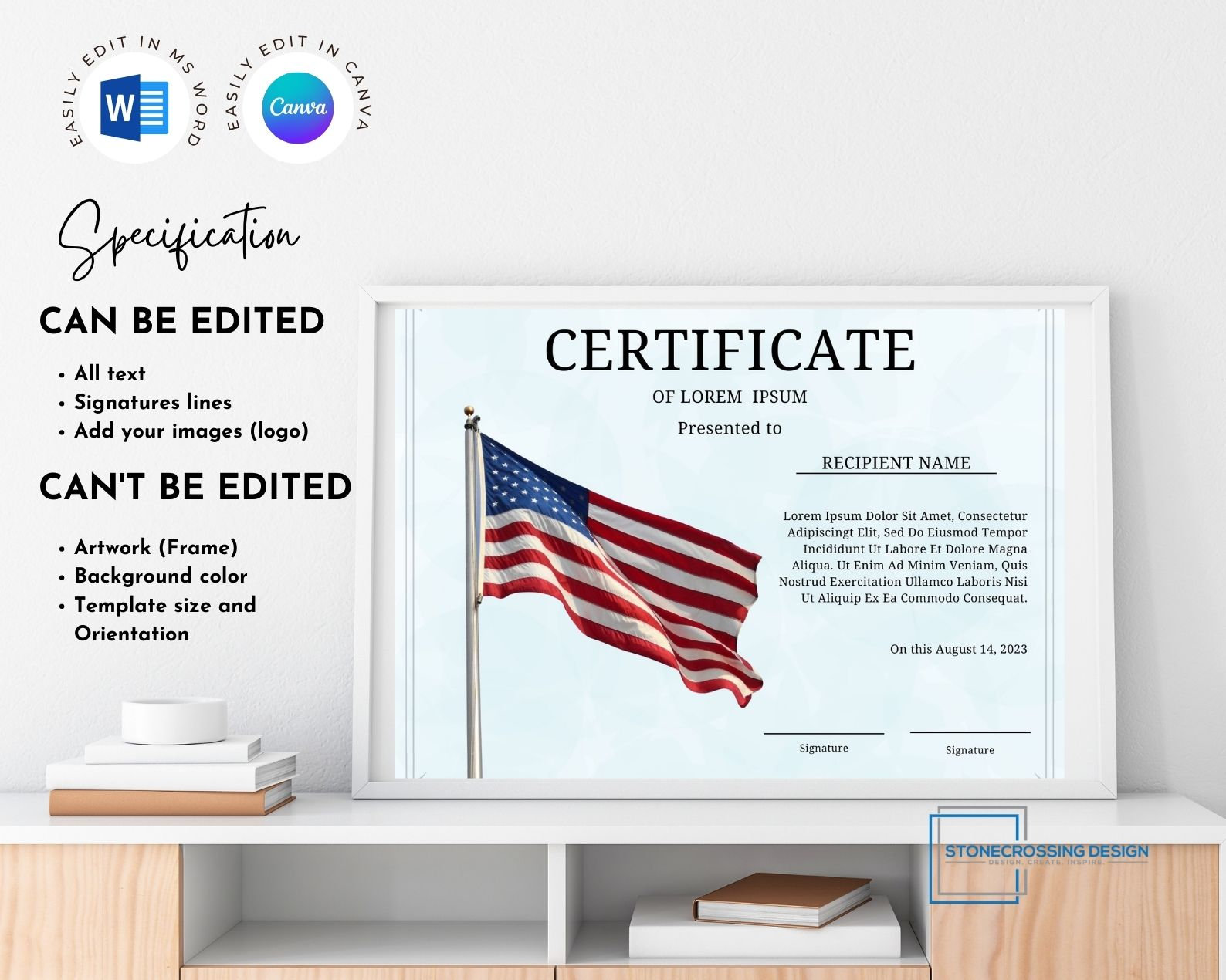 Editable Certificate Template American Flag | Customizable Appreciation ...