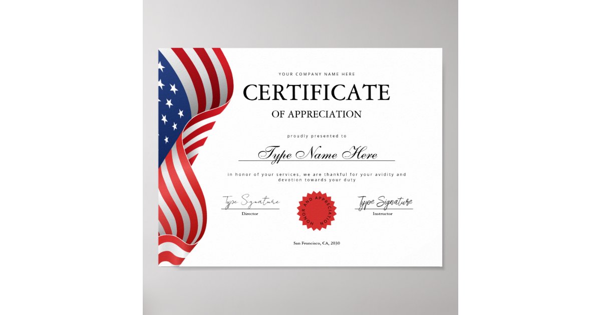 Flag Certificate of appreciation, recognition Poster | Zazzle