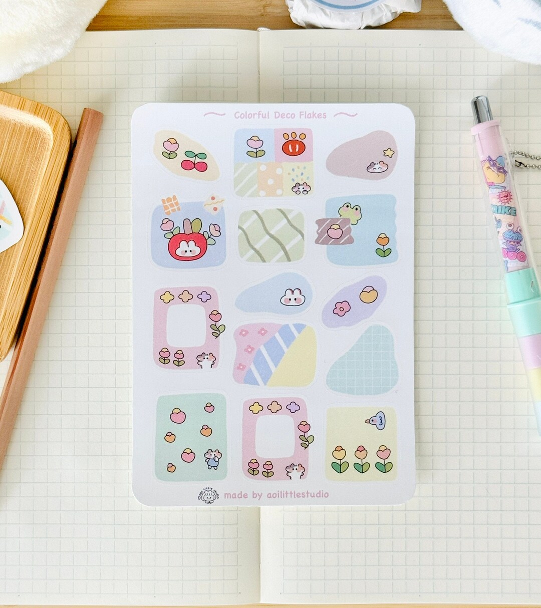 Colorful Deco Flakes Sticker Sheet | Bullet Journal Stickers, Cute ...