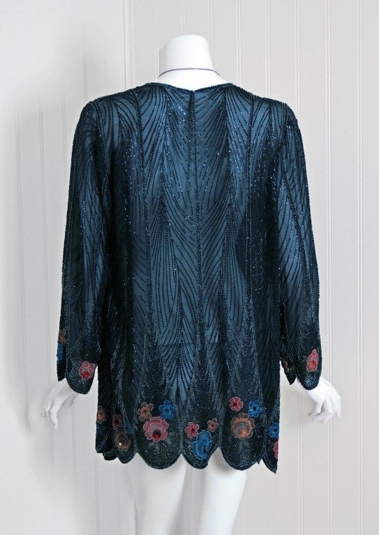 1920's Beaded Sequin Scenic Floral Silk-Chiffon Flapper Jacket at 1stDibs