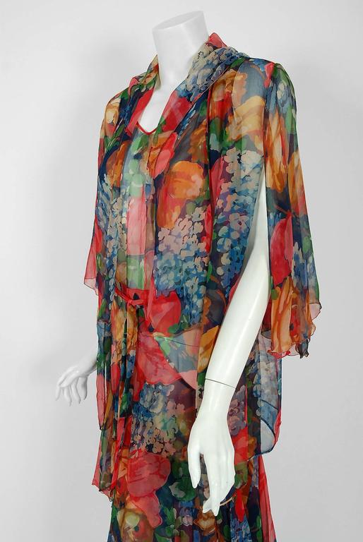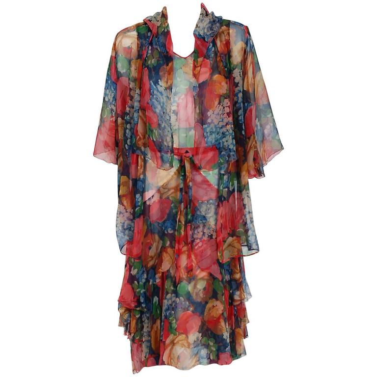 1920's Watercolor Floral-Garden Print Silk Chiffon Tiered Flapper Dress ...