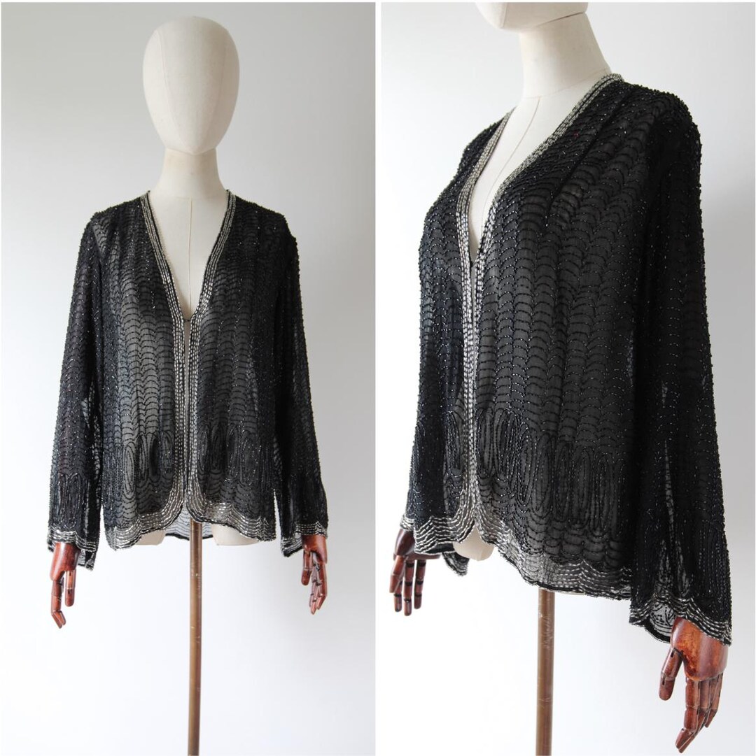 Vintage 1920's Beaded Jacket Black and Silver Cotton Base 1920's Jacket ...