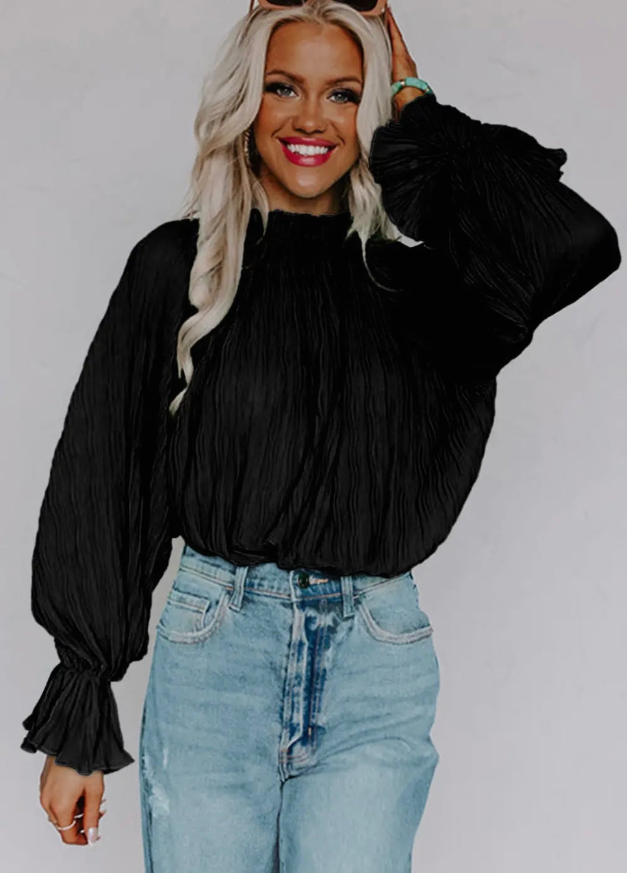Striking Pleated Flared Cuff Long Sleeve Blouse – Dainty Dot Wear