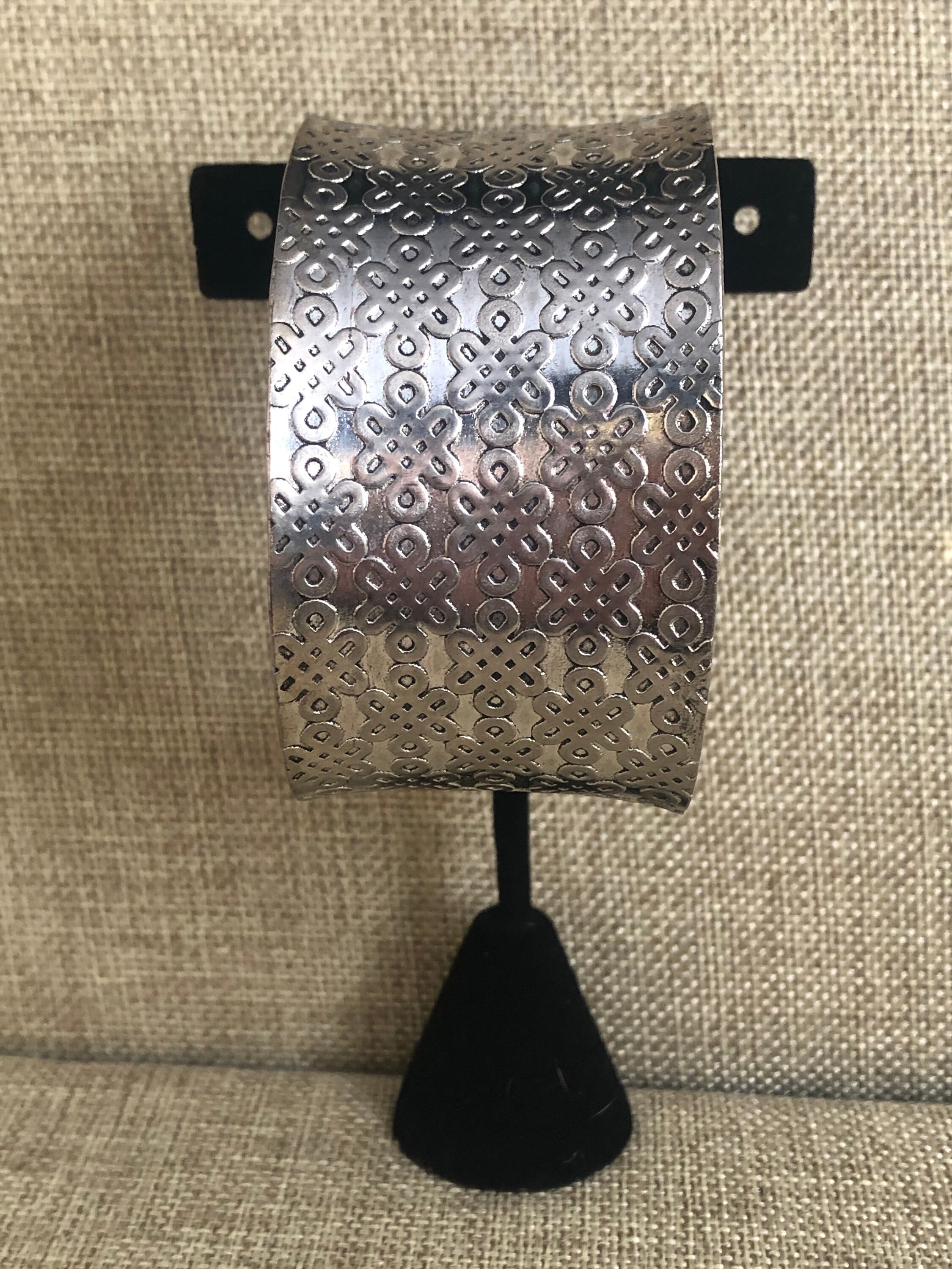 Vintage Silver Asian Motif Flared Cuff Bracelet, Signed, Chinese