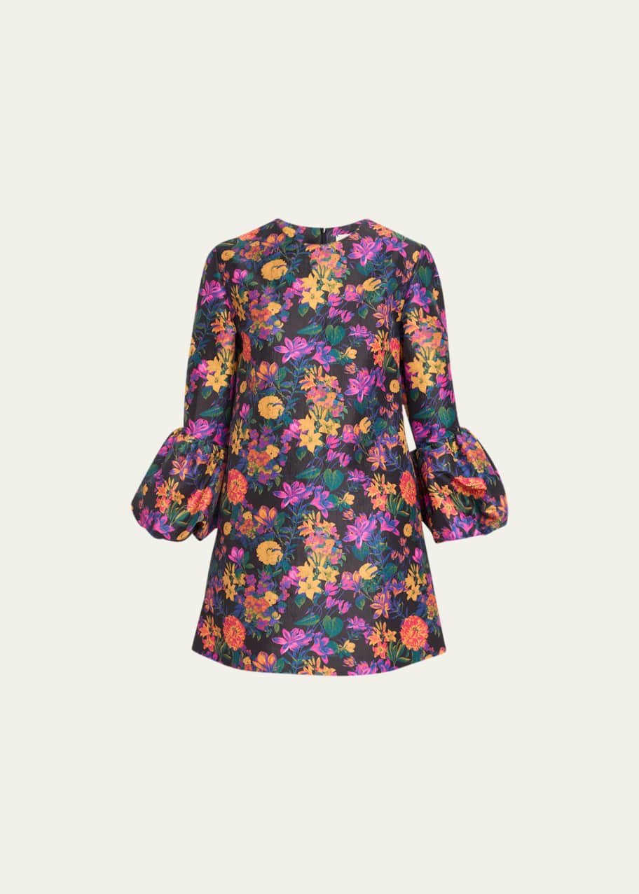 Kika Vargas Florence Floral Flared-Cuff Mini Dress - Bergdorf Goodman