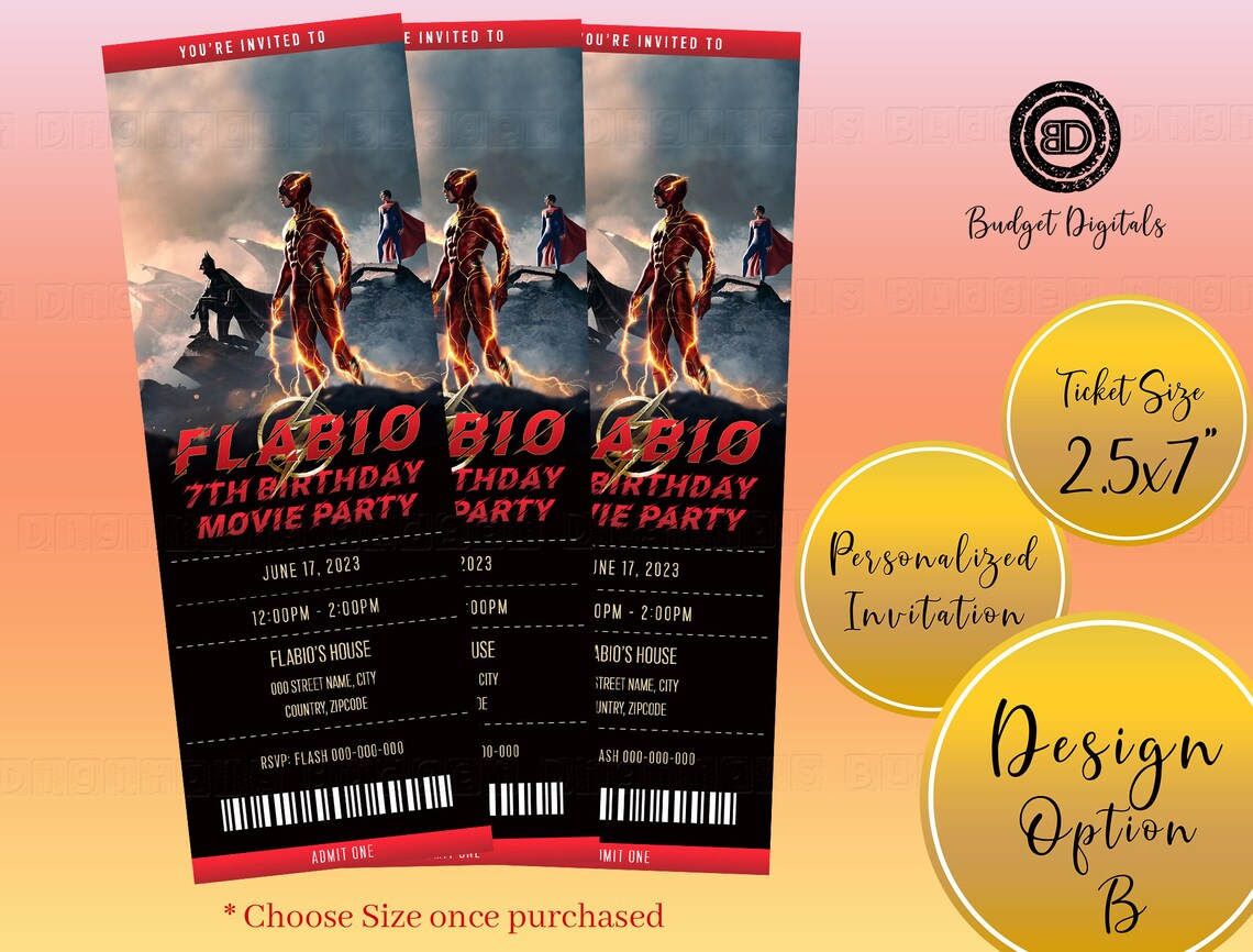 THE FLASH Birthday Invitation, the FLASH Movie Ticket, the Flash ...