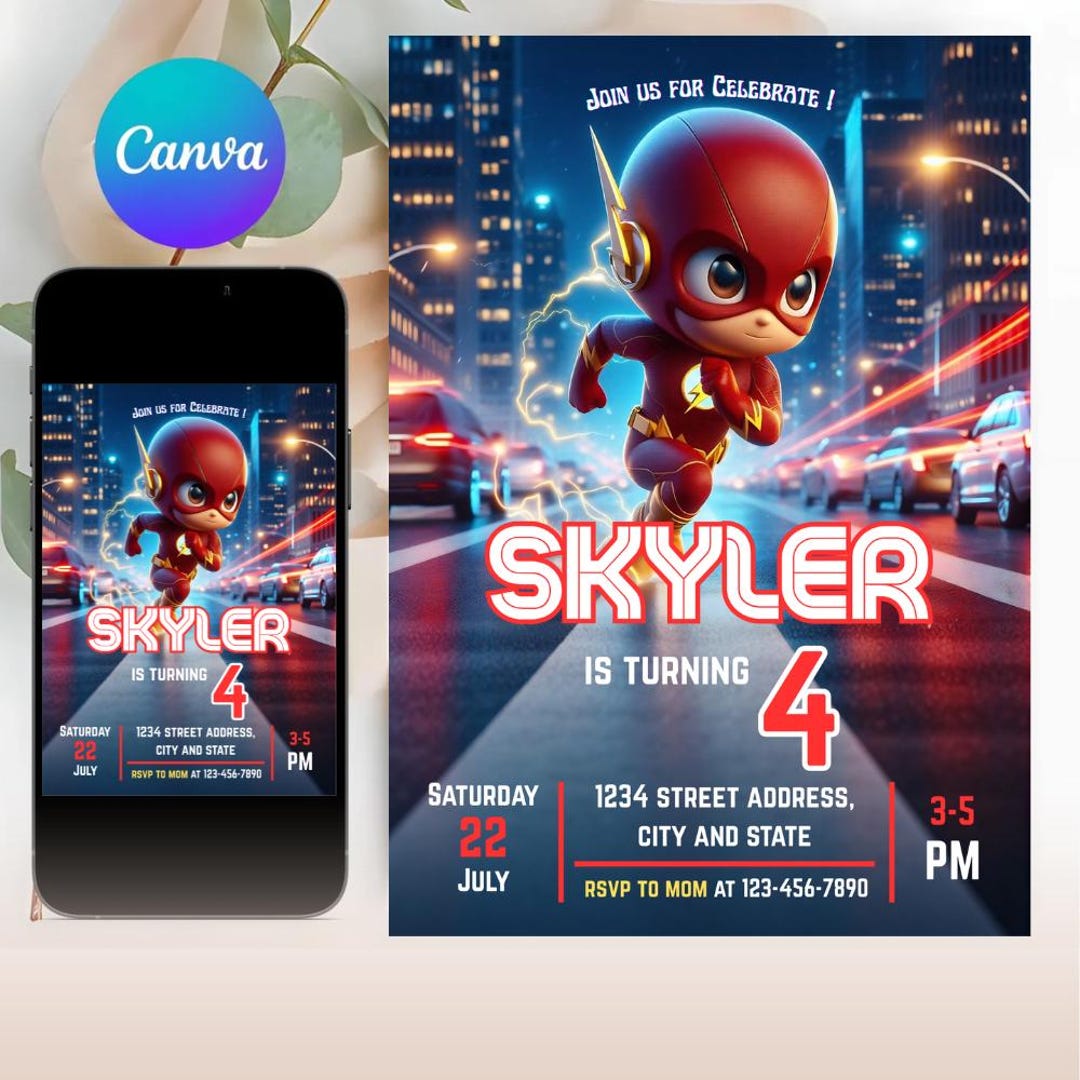 Flash Birthday Invitation Template, Editable Flash Birthday Party ...