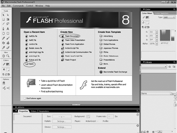 PART 1 - Creating a new Flash document and choosing a workspace layout ...